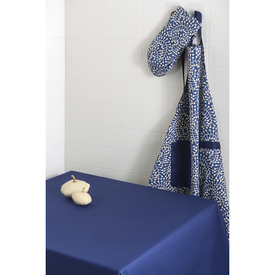 Прихватка-варежка темно-синего цвета с принтом Спелая Смородина из коллекции Scandinavian touch – практичный и полезный кухонный аксессуар. Рисунок со стилизованными ягодами смородины и округлыми линиями веточек разработан одним из ведущих финских дизайнерских агентств. Изделие хорошо сочетается с другим кухонным текстилем из этой же коллекции, оно станет ярким акцентом в интерьере кухни и гармонично впишется в любой современный стиль. Прихватка не нагревается и хорошо защищает руку от контакта с горячими поверхностями. Внешняя и внутренняя части выполнены из 100% гипоаллергенного хлопка. Наполнитель: полиэстер. Есть удобная петелька для подвешивания.