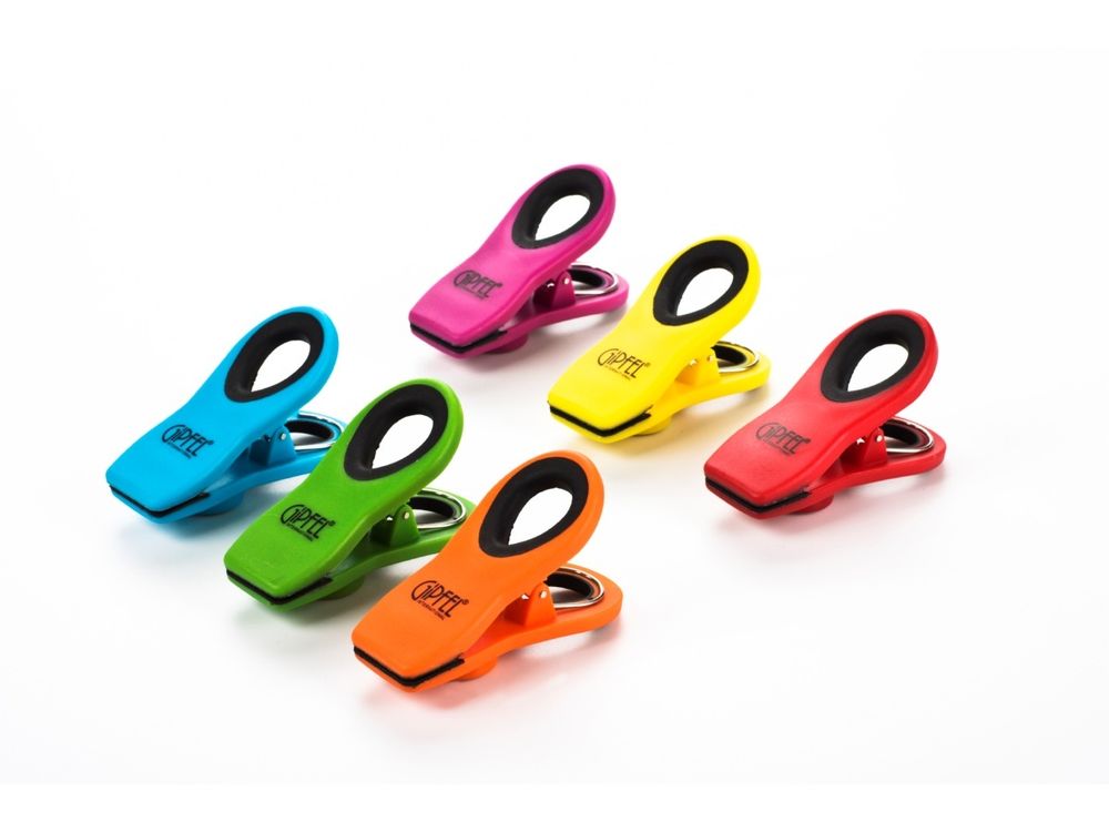 Набор из 6 прищепок с магнитом GIPFEL 9906. Размер каждой прищепки 7,5см. В наборе 6 прищепок, различающихся по цвету. Материал: нержавеющая сталь, пластик, термопластичная резина. Цвета прищепок в комплекте: голубой, зеленый, оранжевый, розовый, желтый и красный. Прищепки подойдут для вскрытых упаковок круп, чая, кофе или специй. Они плотно сидят на магнитной защелке и защитят от просыпания сыпучие продукты.