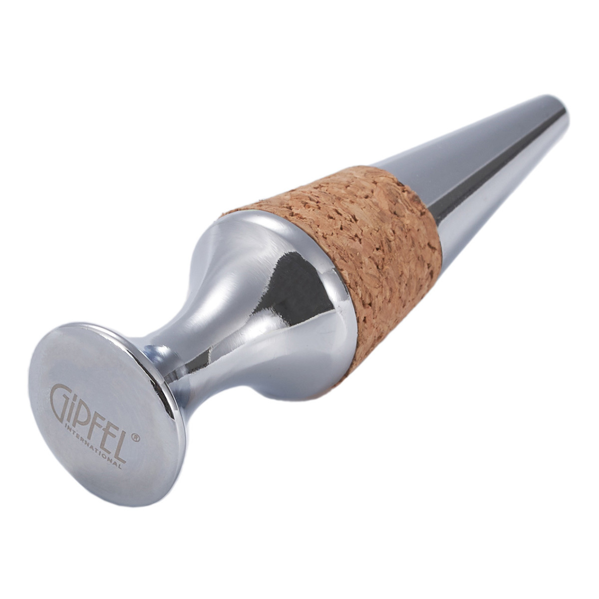 Пробка для вина Gipfel 51723. Изготовлена из цинкового сплава и пробки. Используемые материалы экологичны и безопасны. Практичная пробка имеет оригинальный дизайн и надежно закрывает горлышко стандартной бутылки, препятствуя проливанию содержимого.