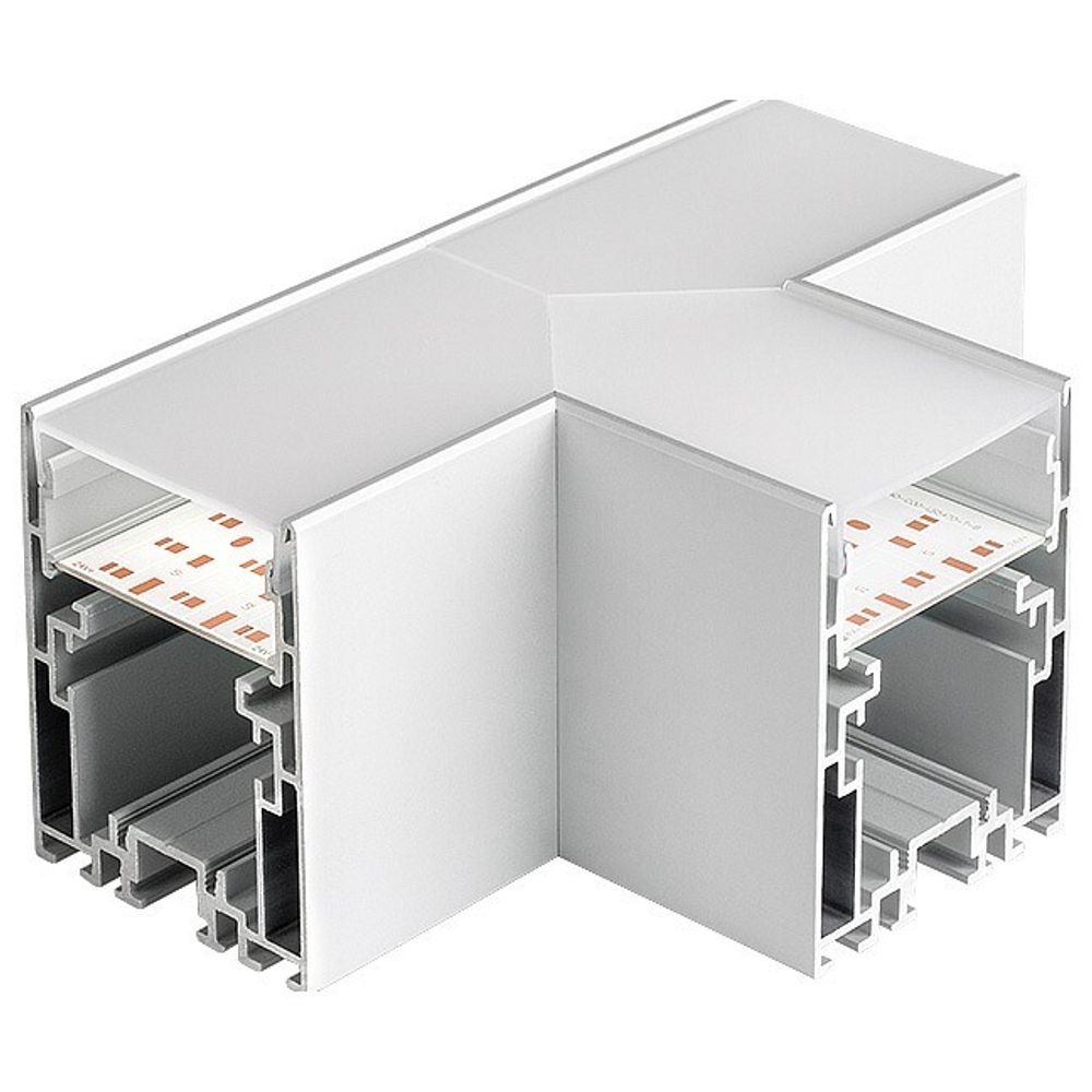 Тройной угол в сборе, для соединения 3-х профилей S2-LINE-5470 под прямыми углами 90°. Экран образует линию 'Т' на плоскости. В комплекте матовый экран, площадка для ленты, соединители. Длина внешней стороны угла 150мм.