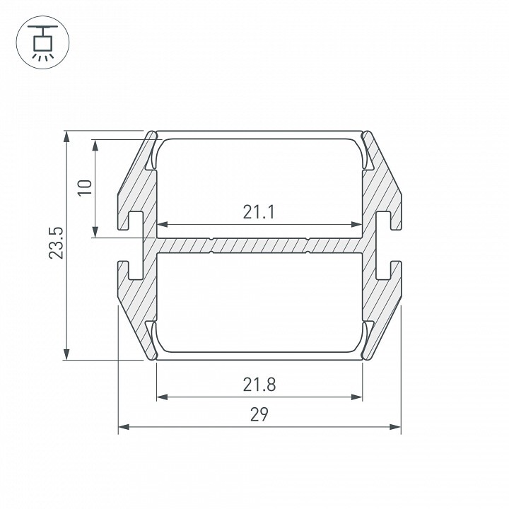 Алюминиевый анодированный подвесной профиль с двусторонним свечением (в стороны). Ширина площадки для ленты 24,2 мм. Для двух лент шириной до 22 мм. Экраны, заглушки и другие аксессуары приобретаются отдельно. КПД профиля (cветовой): 89 % Ширина площадки: 20.1-25.0 мм Ширина световой линии: 20.1-25.0 мм Ширина: 25.1-30.0 Рассеиваемая тепловая: мощность на 1м: max: 24 Вт Способ монтажа: Подвесной