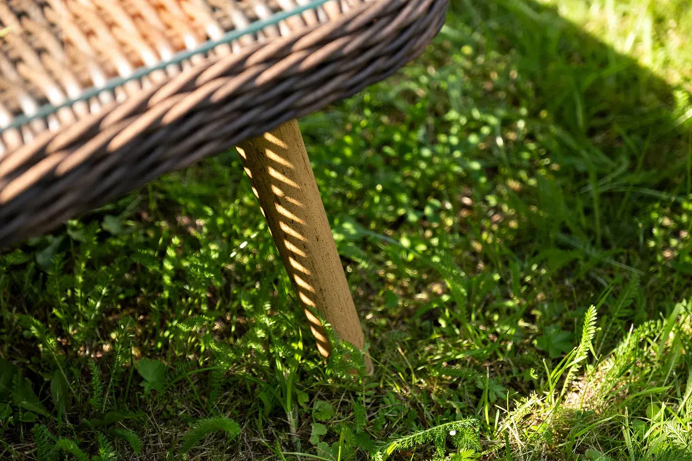Каркас всей группы выполнен из прочного алюминия, который оплетен круглым искусственным ротангом. Цвет – коричневый.