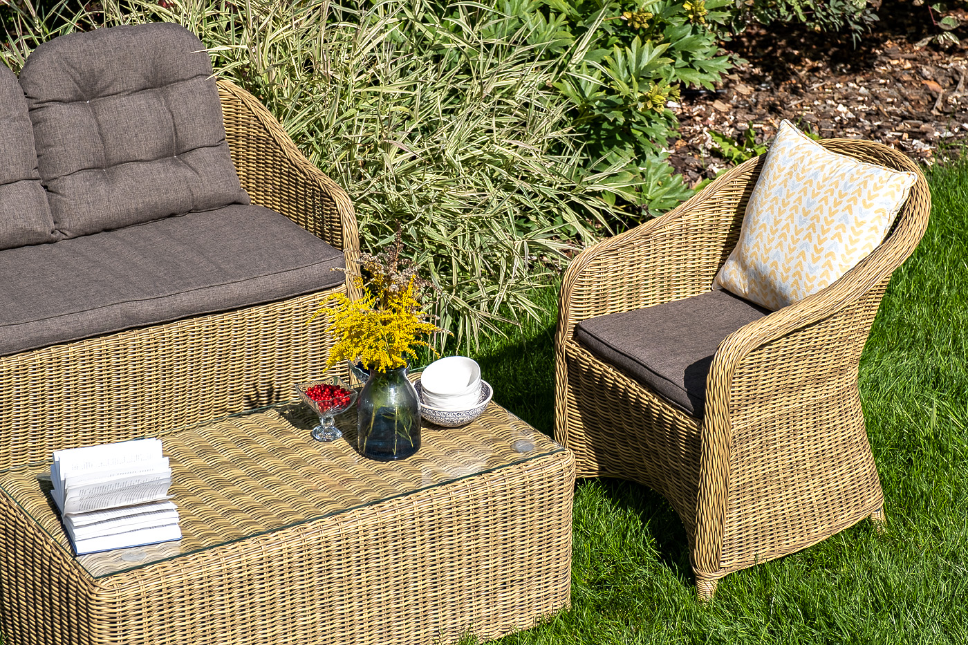 Садовый двухместный диван «Равенна» с подушками в комплекте.