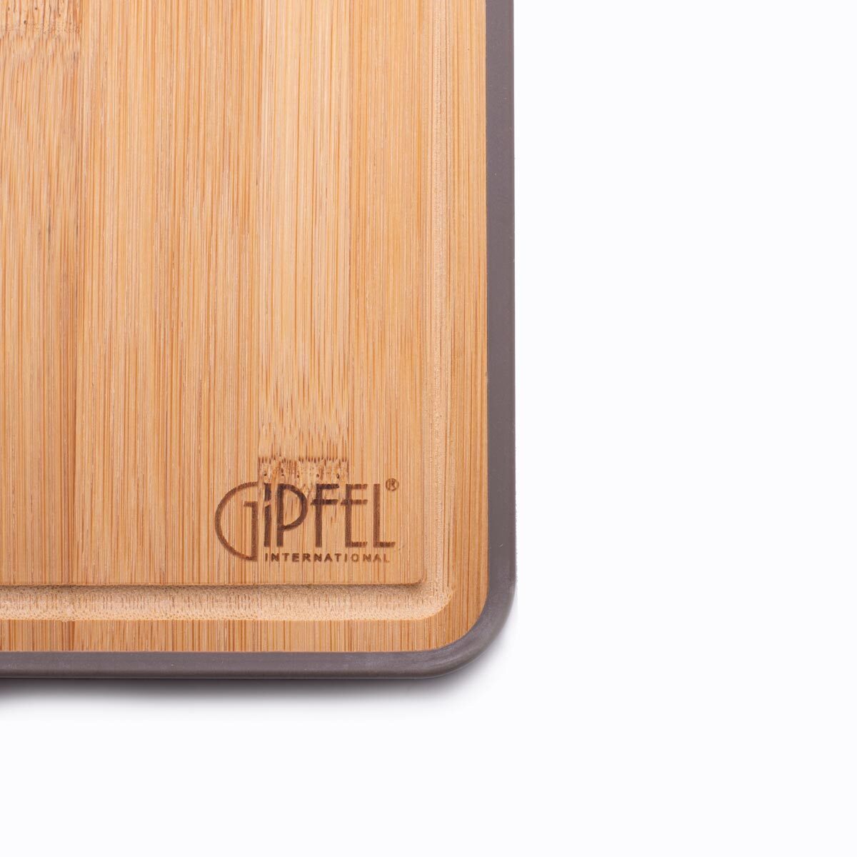 Доска разделочная Gipfel ECO 3253 двусторонняя 35х18х1,7 см. Материал: бамбук, пластик, термопластичная резина. Двустороння доска – очень практичное решение на кухне. Ведь две ее поверхности можно использовать для разного вида продуктов. Например, деревянную поверхность можно использовать для нарезания хлебобулочных изделий, а пластиковую – для овощей, сыра или мяса. Таким образом, доска не передаст посторонние запахи продукту. Доска имеет отверстие для подвешивания, что упрощает ее хранение.