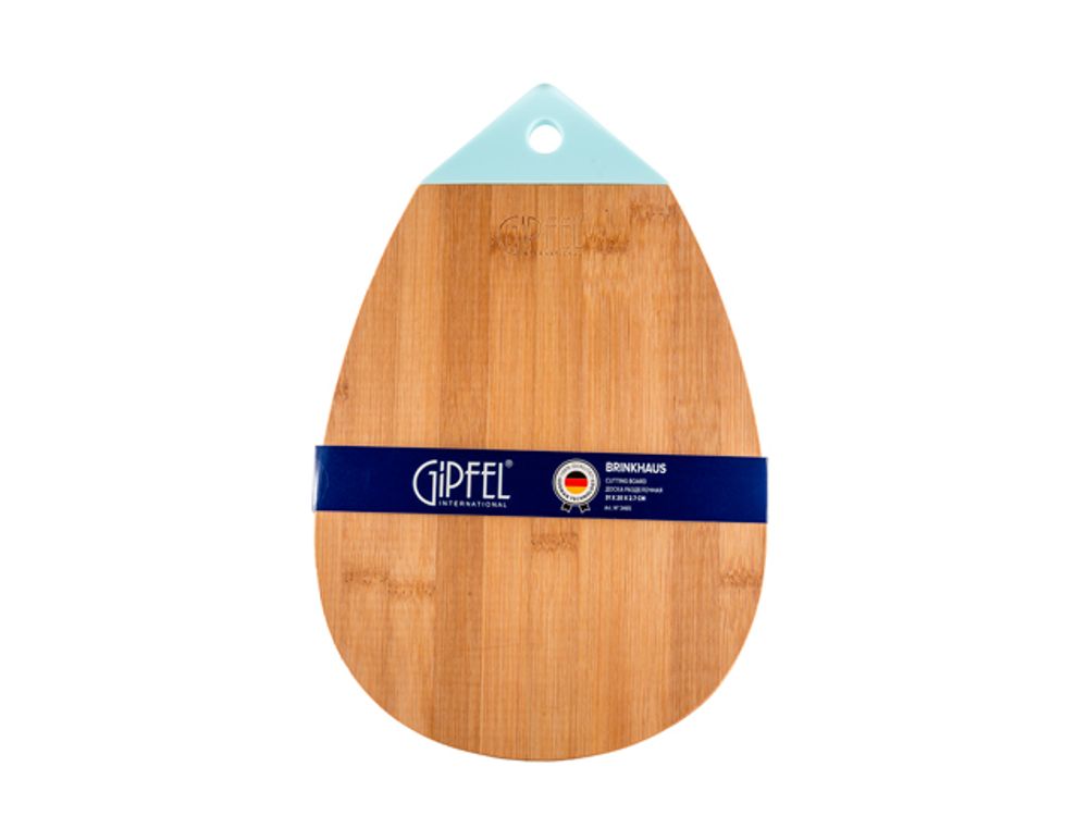3467 GIPFEL Доска разделочная BRINKHAUS 32х25х2,7см c бирюзовым силиконовым подвесом. Материал: бамубук, силикон.