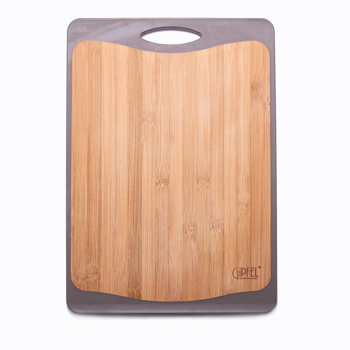 Доска разделочная GIPFEL ECO 3255. Размер доски 40х28х1,8см. Доска имеет две стороны из бамбука и пластика. Края сделаны из термопластичной резины, что делает доску устойчивой на любой поверхности.