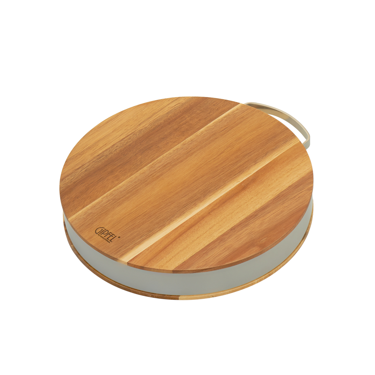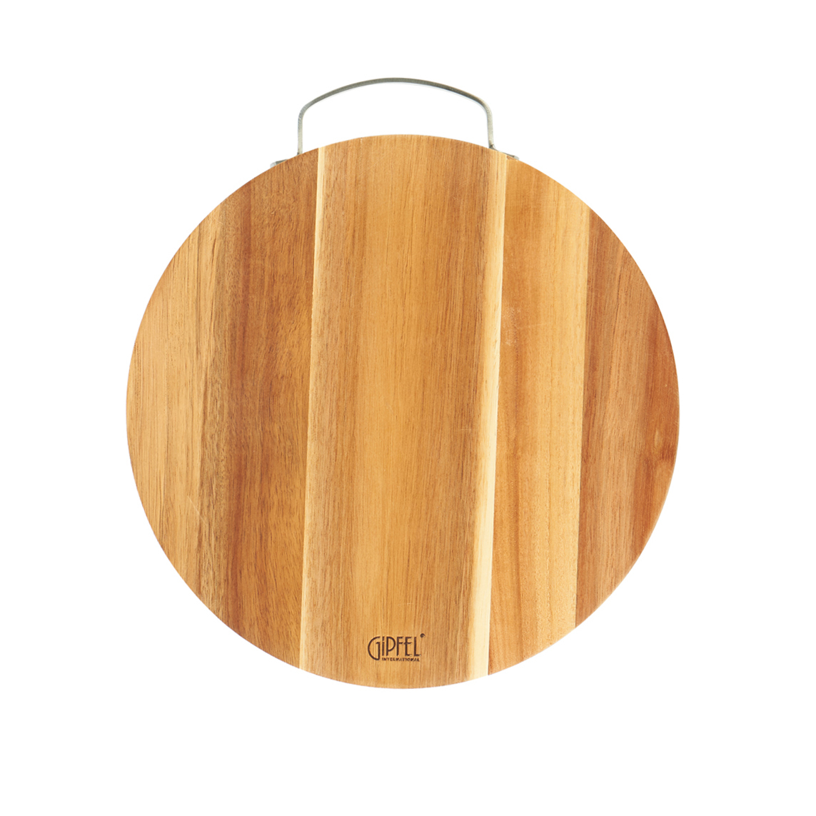 Доска разделочная GIPFEL GIGANT 3256. Размер 30x30х5см. Доска сделана из акации и имеет стальную ручку. Может использоваться также в качестве сервировочной доски. Имеет круглую форму, диаметр составляет 30 см, а высота – 5см.