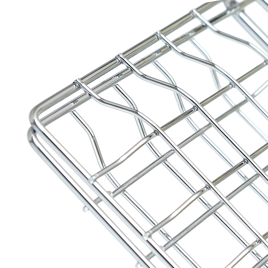 Материал: хромированная железная проволока, древесина. Размеры: 54,5x35,7x2,3 см. Толщина стали: 4,4х2,8х1,8 см. Размер рабочей поверхности: 2,3 х35,6х22,3 см. Длина ручки: 12 см.