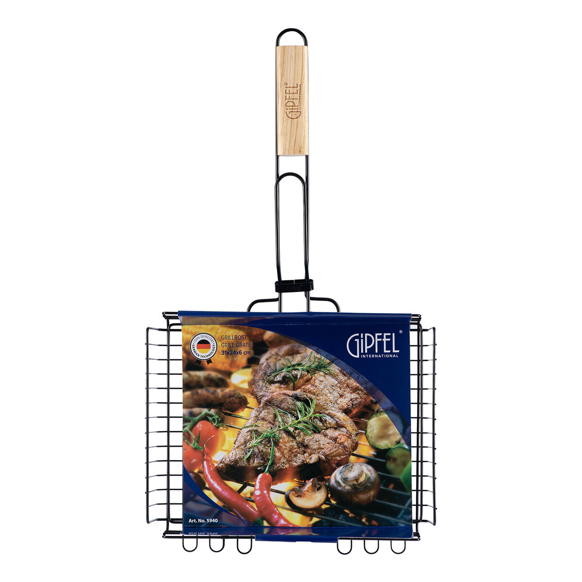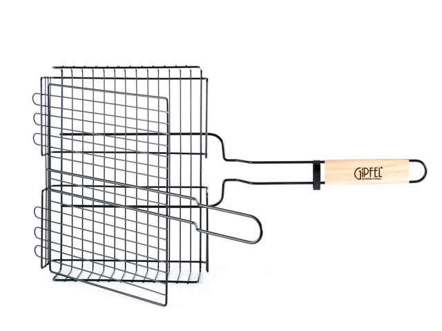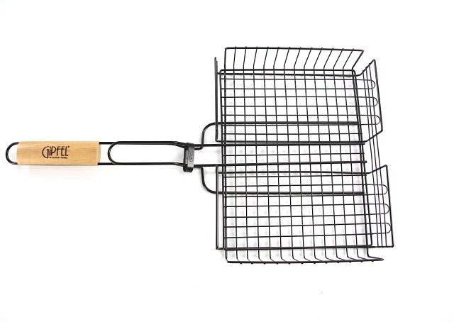 Двойная металлическая решетка-гриль Gipfel 5940. Решетка большого размера 31х24х6 см. Длина с ручкой - 58 см., благодаря чему на ней можно комфортно разложить овощи, мясо или рыбу.