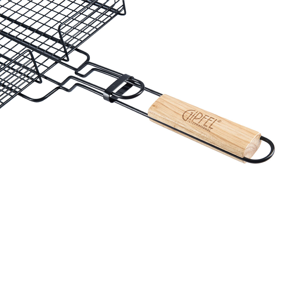 В процессе готовки решетку можно легко переворачивать — двойная конструкция, размер ячеек и блокировочное кольцо защитят продукты от падения на мангал.