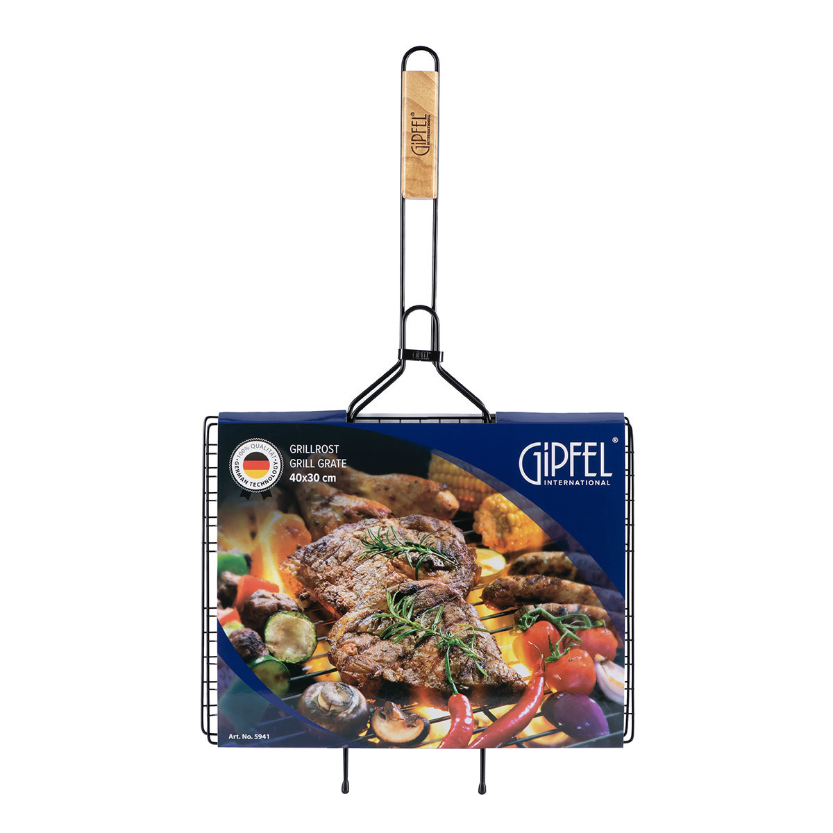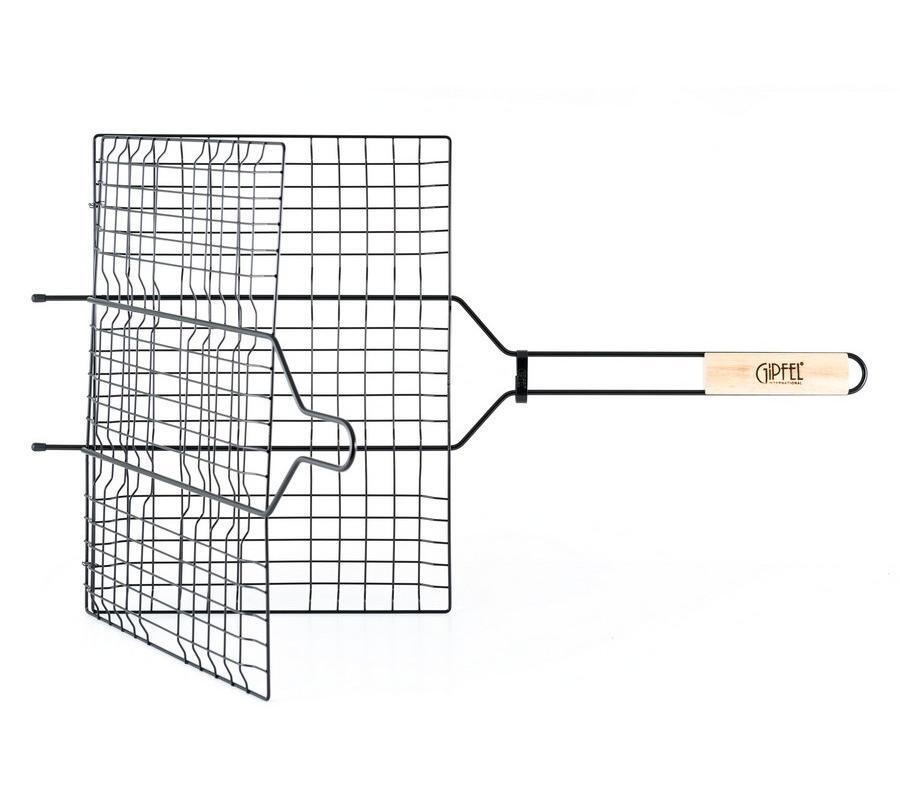 Решетка-гриль Gipfel 5941. Металлическая двойная решетка размером 40х71 см. Оснащена антипригарным покрытием Teflon, что убережет мясо или овощи от пригорания. Деревянная ручка не будет нагреваться во время жарения.