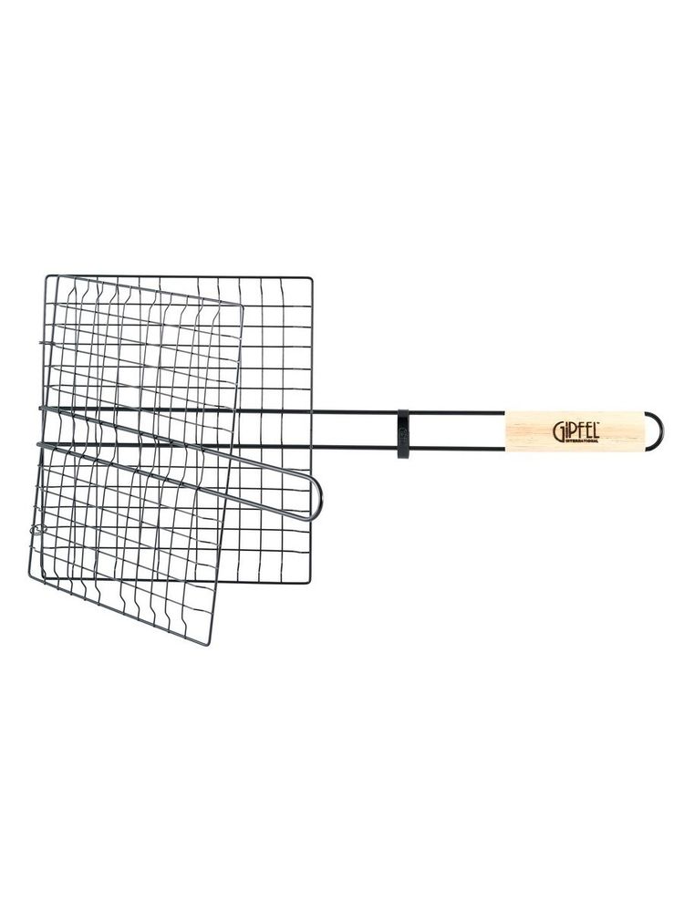Представленная в каталоге решетка-гриль металлическая считается универсальной моделью. Благодаря приемлемым размерам — 55 × 27 × 24 см — на ней без проблем раскладываются мясо, рыба, а также овощи. В процессе готовки решетку можно легко переворачивать — двойная конструкция, размер ячеек и блокировочное кольцо защитят продукты от падения на мангал. Модель, выполненная из нержавеющей стали, не вызовет проблем в эксплуатации. Не окисляется, не деформируется, не требует сложного ухода, а благодаря запатентованному антипригарному покрытию сохраняет эстетичный вид готовой пищи. Легко очистить прутья от жира можно с помощью губки для мытья посуды и стандартного средства.