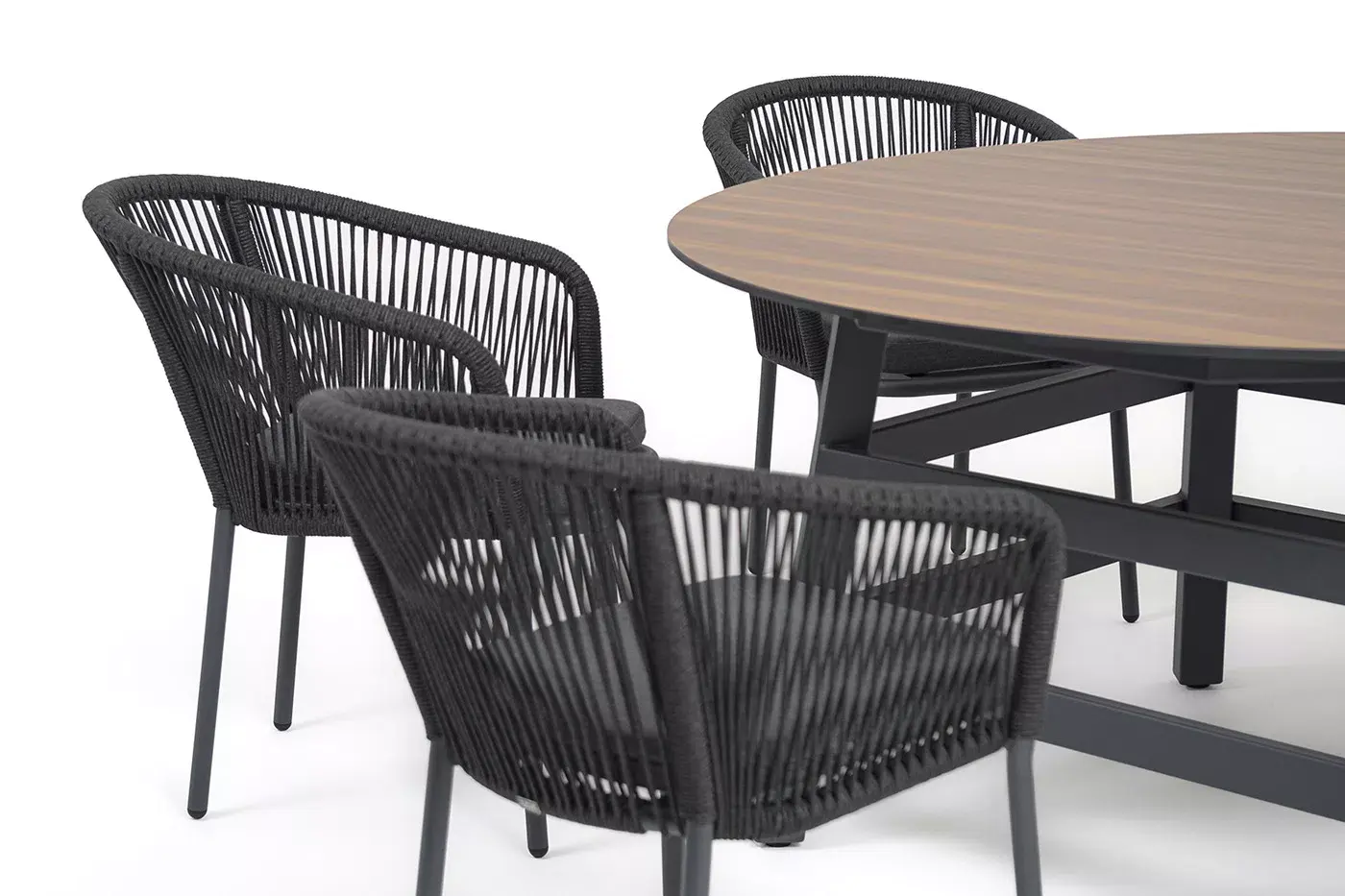- 6 плетеных стульев «Марсель» из роупа, размером - 570×620×775 мм, цвет роупа - темно-серый, каркас из алюминия, окрашен порошковой краской в темно-серый оттенок.