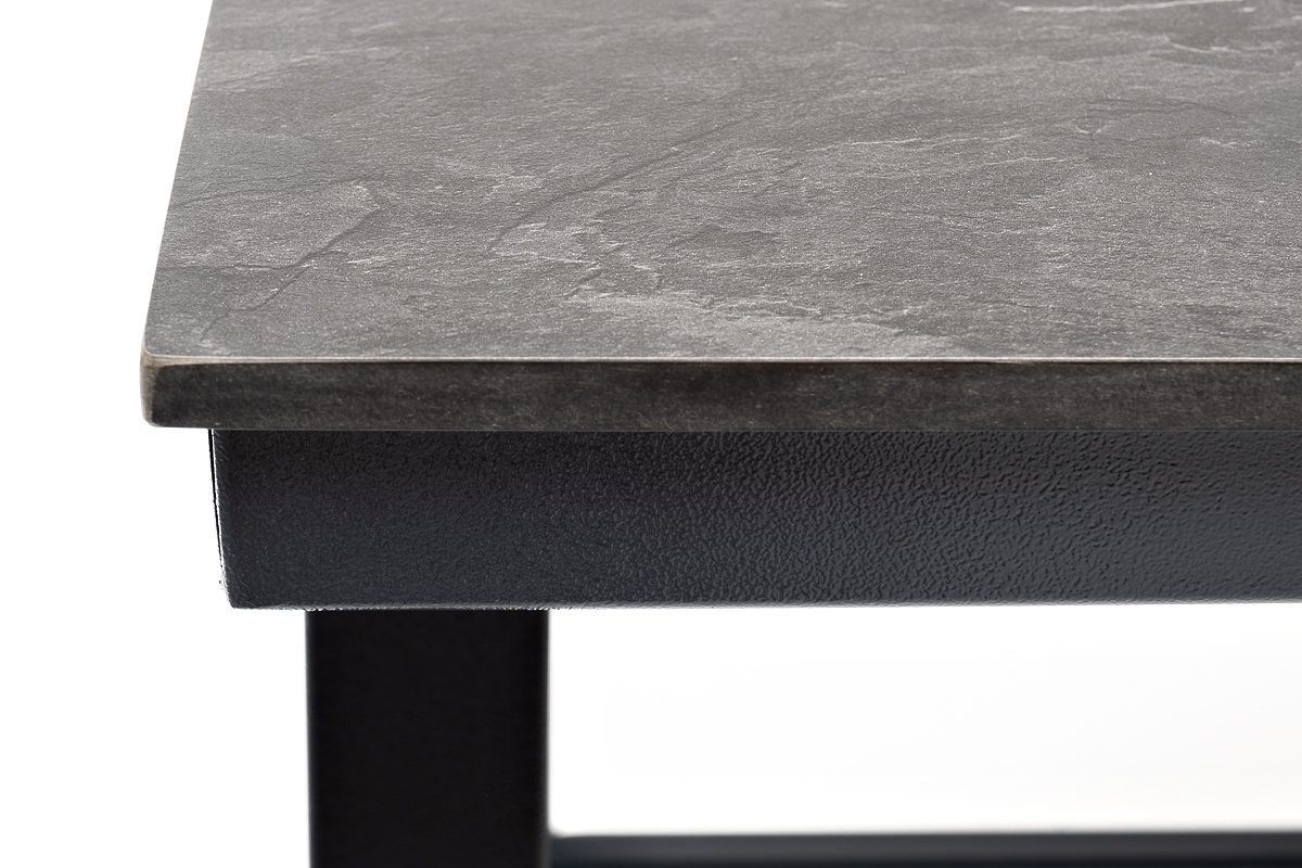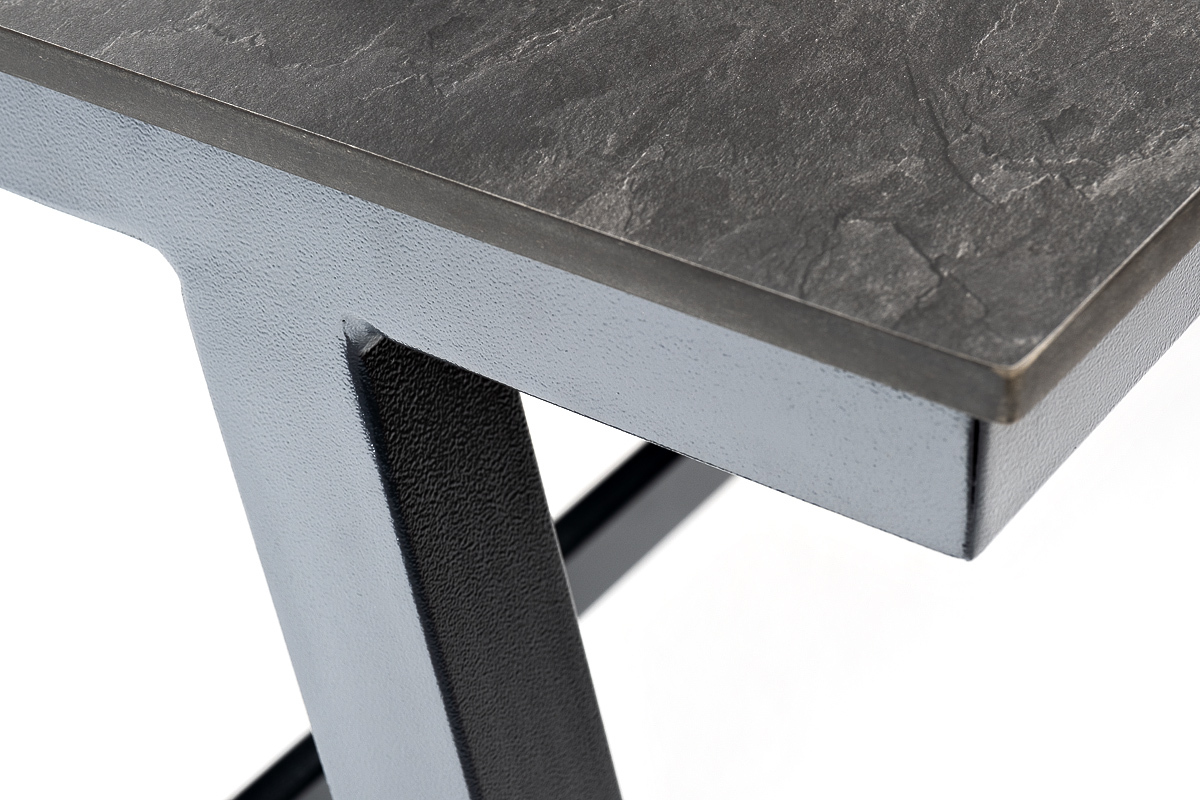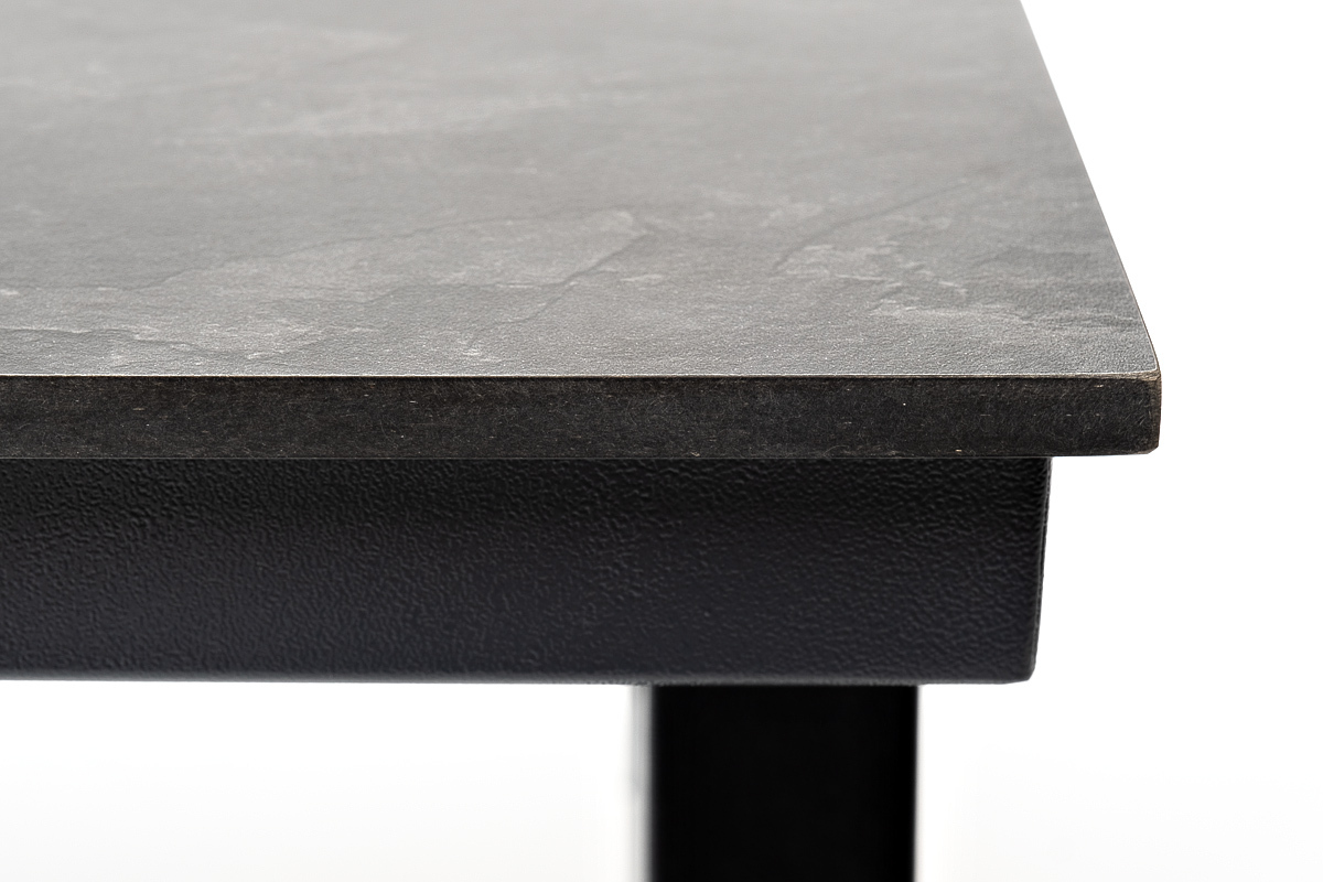 Размер стола - 1400×700×750 мм. Столешница изготовлена из компакт-пластика HPL c рисунком цвета «серый гранит».