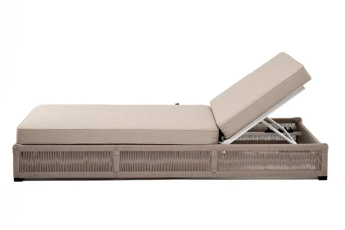 «Ривьера» плетеный шезлонг из роупа бежевого оттенка прекрасно дополнит пространство для отдыха на открытом воздухе.