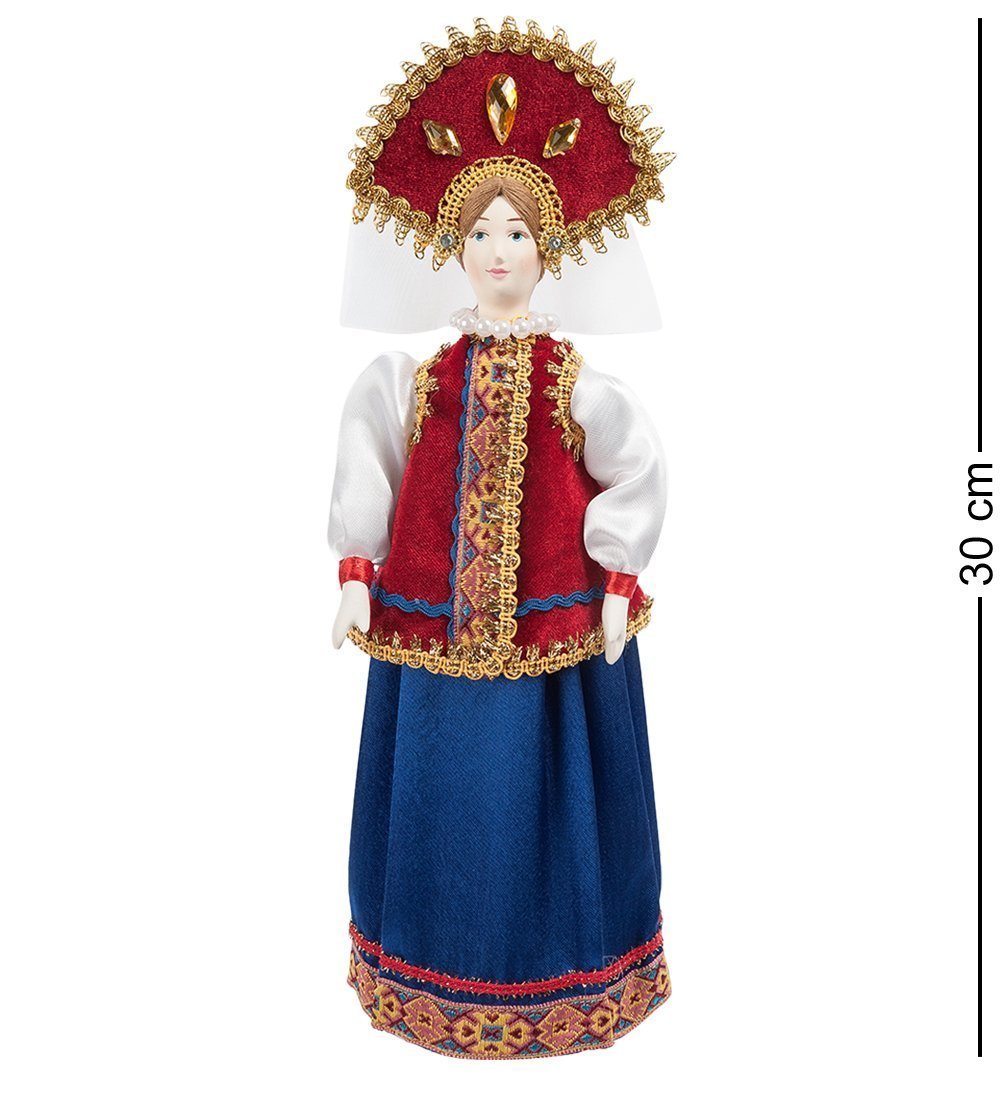 Кукла ''Серафима'' Одета в русский народный костюм, который является украшением русской культуры. Возникший как рукотворный предмет утилитарного назначения, выражающий эстетические чувства человека, народный костюм одновременно представляет художественный образ, содержательная ценность которого тесно связана с его функциями. Это один из наиболее массовых видов народного творчества и декоративно-прикладного искусства в целом. Русский народный костюм представляет собой целостный художественный ансамбль, несущий определенное образное содержание, обусловленное назначением и сложившимися традициями. Его образуют гармонично согласованные предметы одежды, украшения и дополнения к ним, прическа, головной убор, грим. Кукла выполнена высококвалифицированным специалистом. Для создания куклы мастер использует высококачественный материал. Лицо выполнено из бисквитного фарфора, расписана акриловыми красками. Подарив такой подарок, друзьям и близким Вы не только украсите, но и внесете тепло и уют в их дом. Серафима будет прекрасным подарком ребенку, порадует и взрослых, не равнодушных к кукольному творчеству.