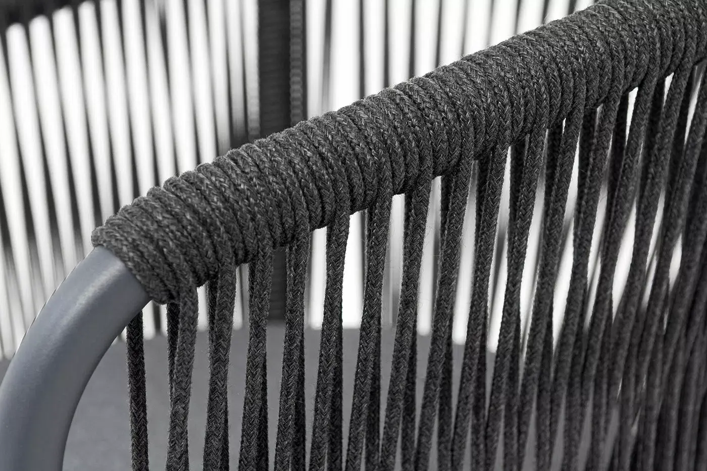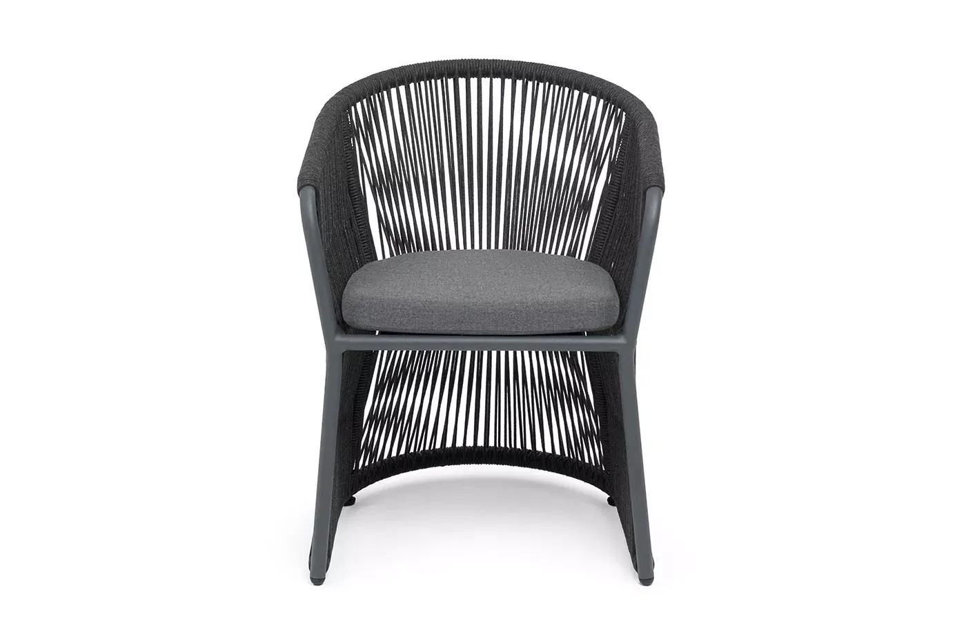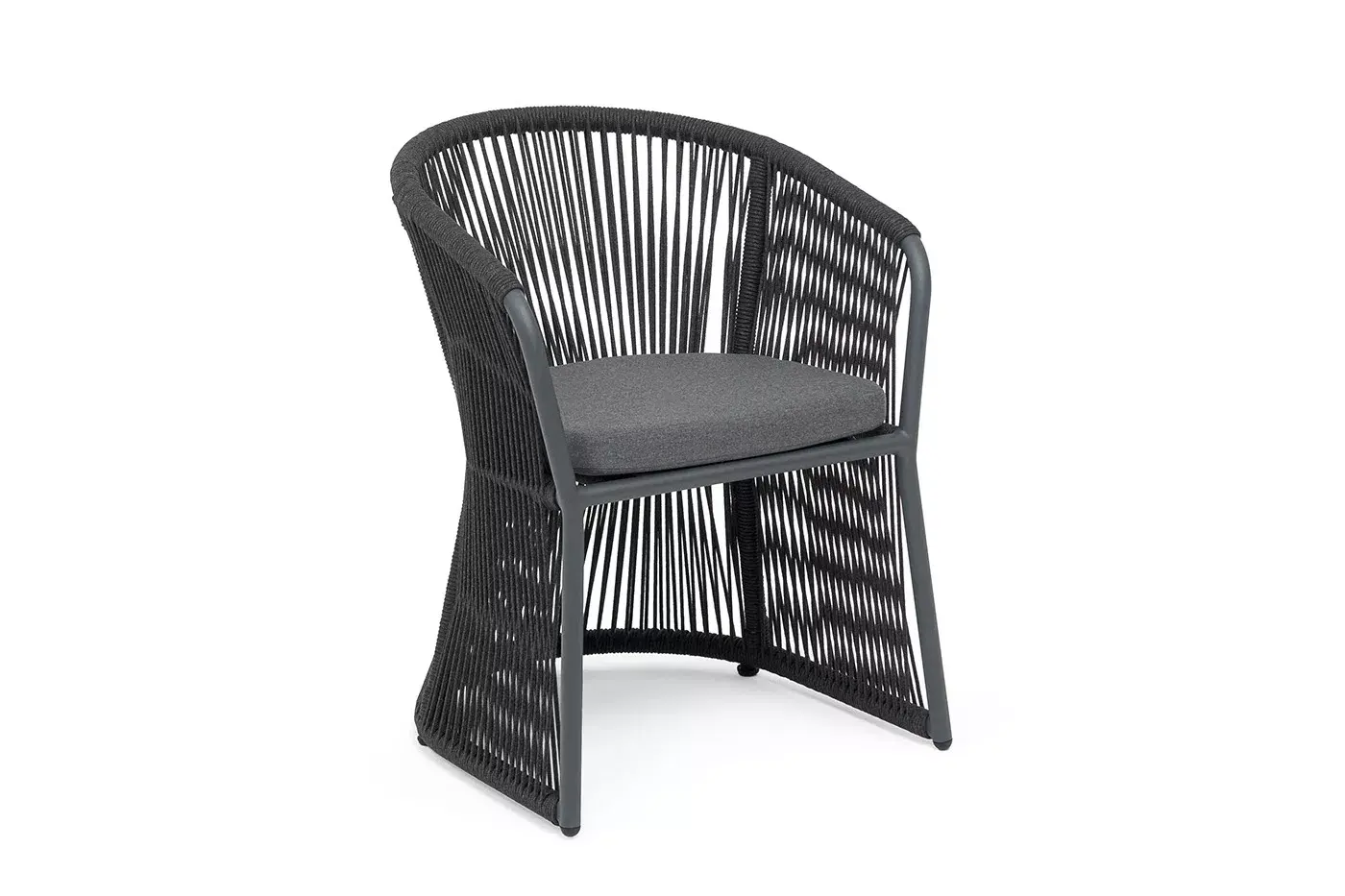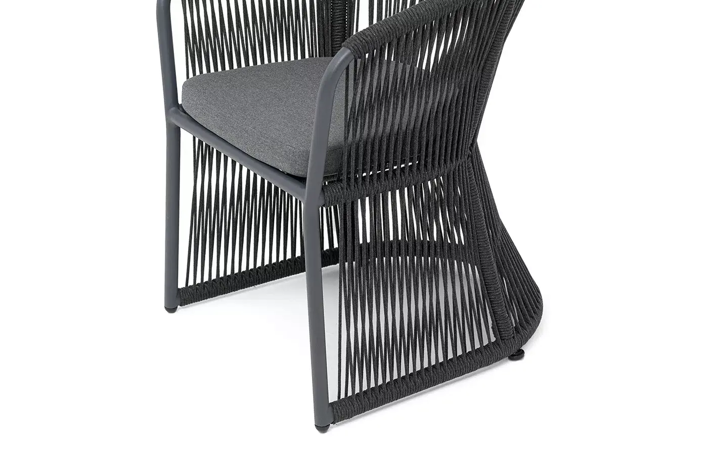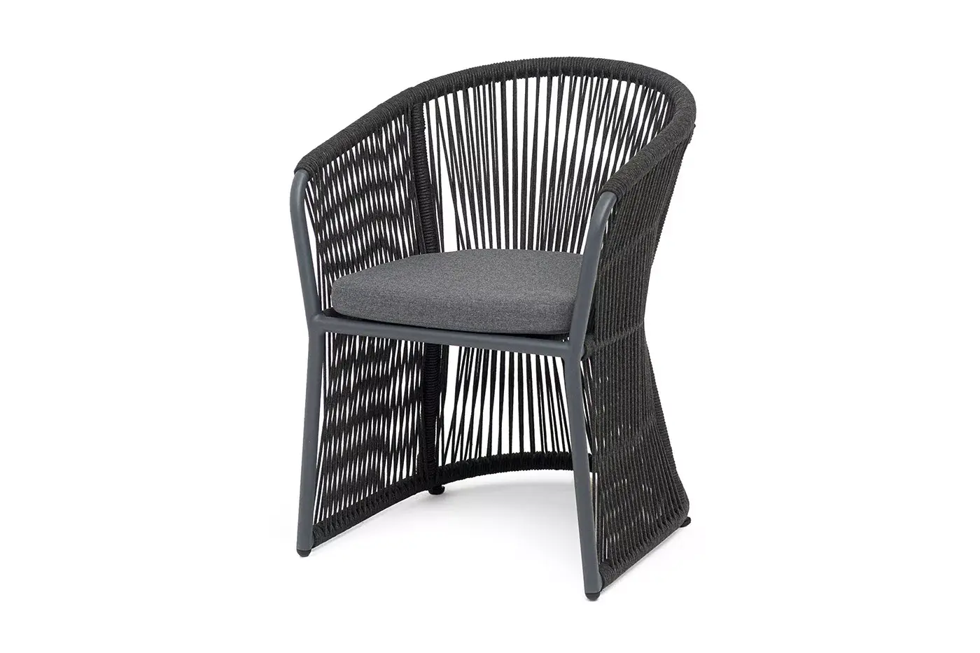 "Романо" стул плетеный из роупа, каркас алюминий темно-серый (RAL7024) муар, роуп темно-серый круглый, ткань темно-серая 027