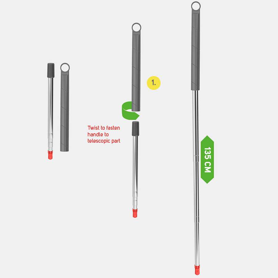 Компактная ручка для швабры облегчит уборку в труднодоступных местах.