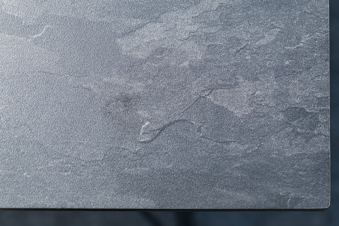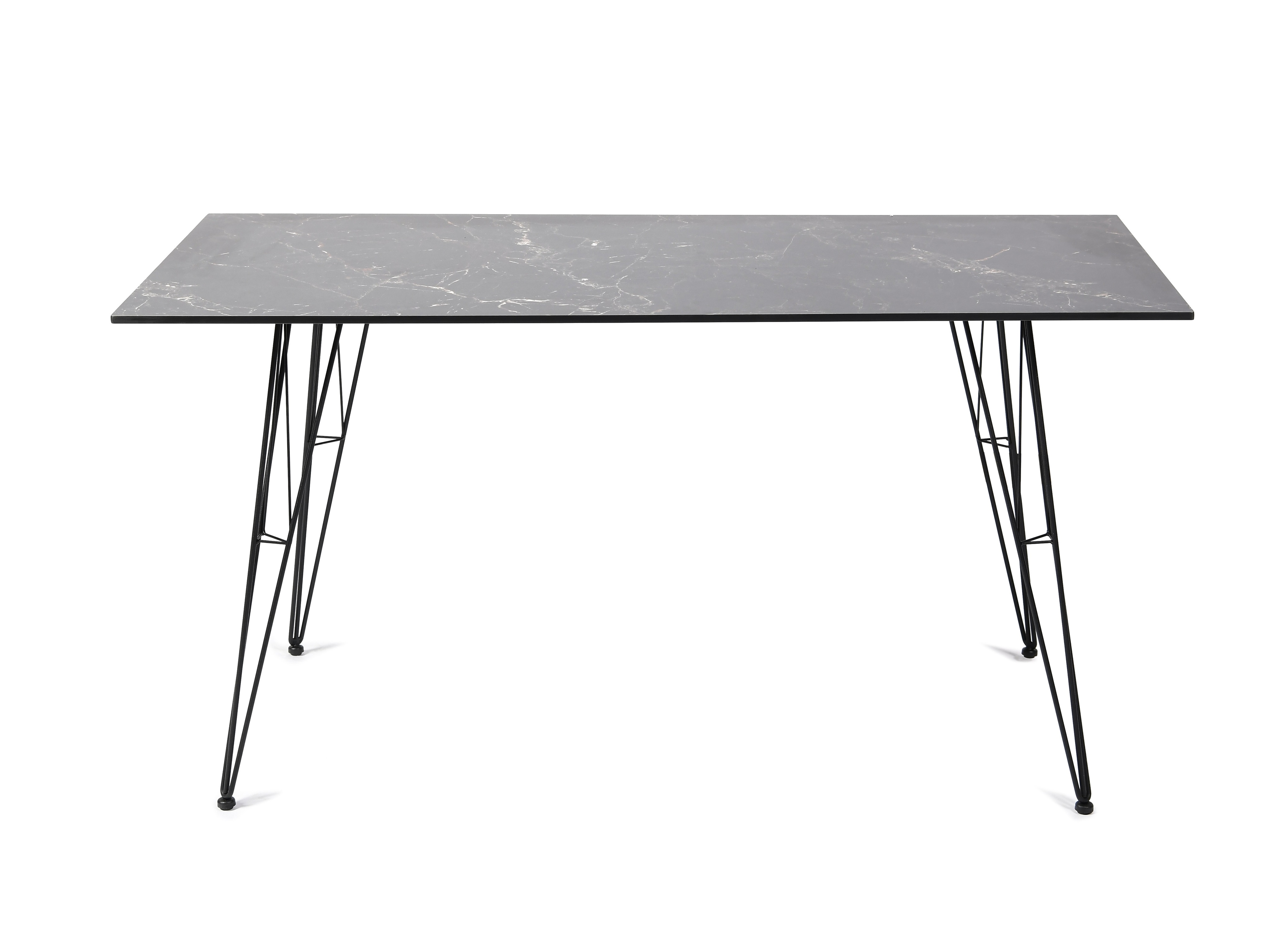 Столешница выполнена из современного высококачественного монолитного компакт-пластик HPL, толщиной 12 мм с цветом под черный мрамор. Материал устойчив к высоким температурам, попаданию влаги и может использоваться и на кухне. Подстолье изготовлено из крашеного металла в цвете «мокрый асфальт».