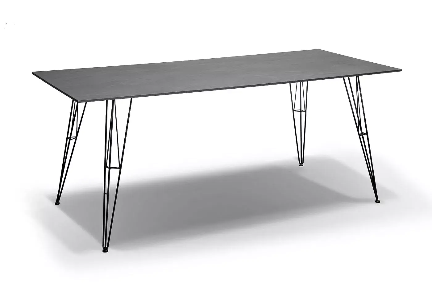 Столешница выполнена из современного высококачественного монолитного компакт-пластик HPL, толщиной 12 мм с цветом под «серый гранит». Материал устойчив к высоким температурам, попаданию влаги и может использоваться и на кухне. Подстолье изготовлено из крашеного металла в черный цвет.