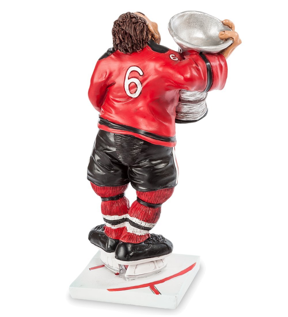Фигурка хоккеиста высотой 22 см станет отличным подарком для заядлого болельщика хоккея или для игрока.