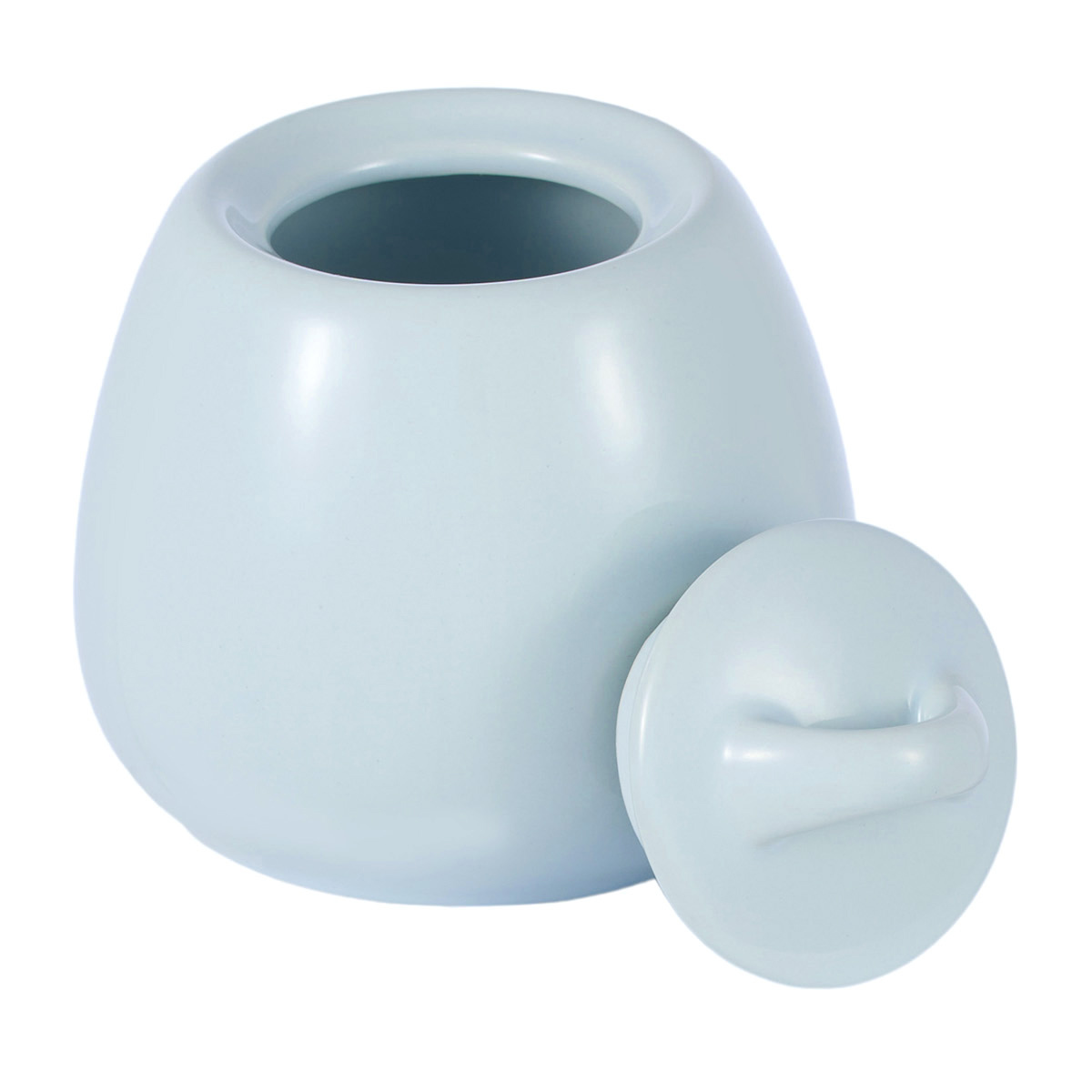 Сахарница выполнена в нежном молочно-голубом цвете.