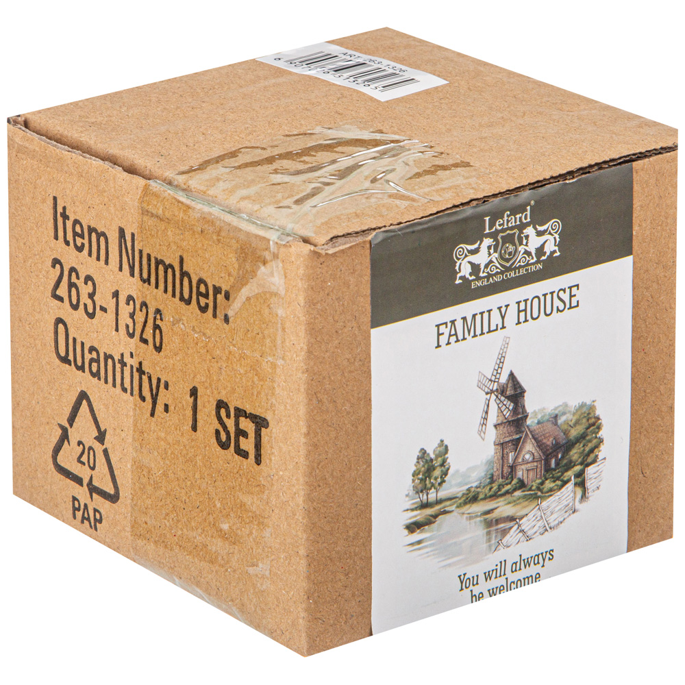 ТM Lefard эксклюзивная коллекция «FAMILY HOUSE» - качество и функциональность в оригинальном дизайнерском исполнении. Дом – это самое любимое место, лучше и дороже которого нет на свете, где в просторной гостиной найдется место провести вечер и пригласить гостей. Lefard предлагает широкий выбор предметов, позволяющих создать неповторимый интерьер, сервировать гостеприимный стол и превратить процесс приготовления блюд в удовольствие. Тарелки и блюда, кружки и чайные пары, чайники, сахарницы и банки легки в уходе и использовании. Оригинальная упаковка. Прекрасный подарок. Вся продукция сертифицирована и безопасна для контакта с пищевыми продуктами. Разрешено мыть в посудомоечной машине. Фарфоровую часть можно использовать в духовом шкафу, микроволновой печи.