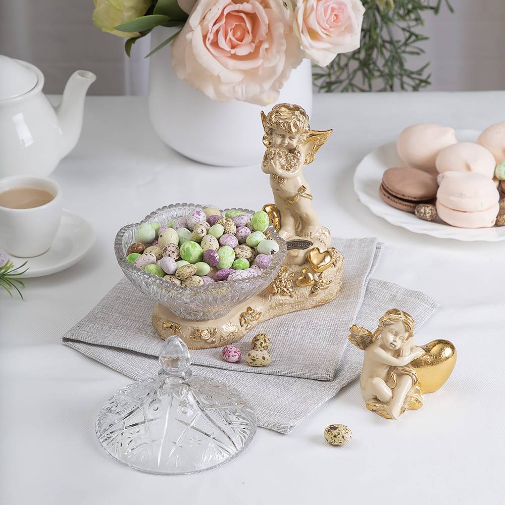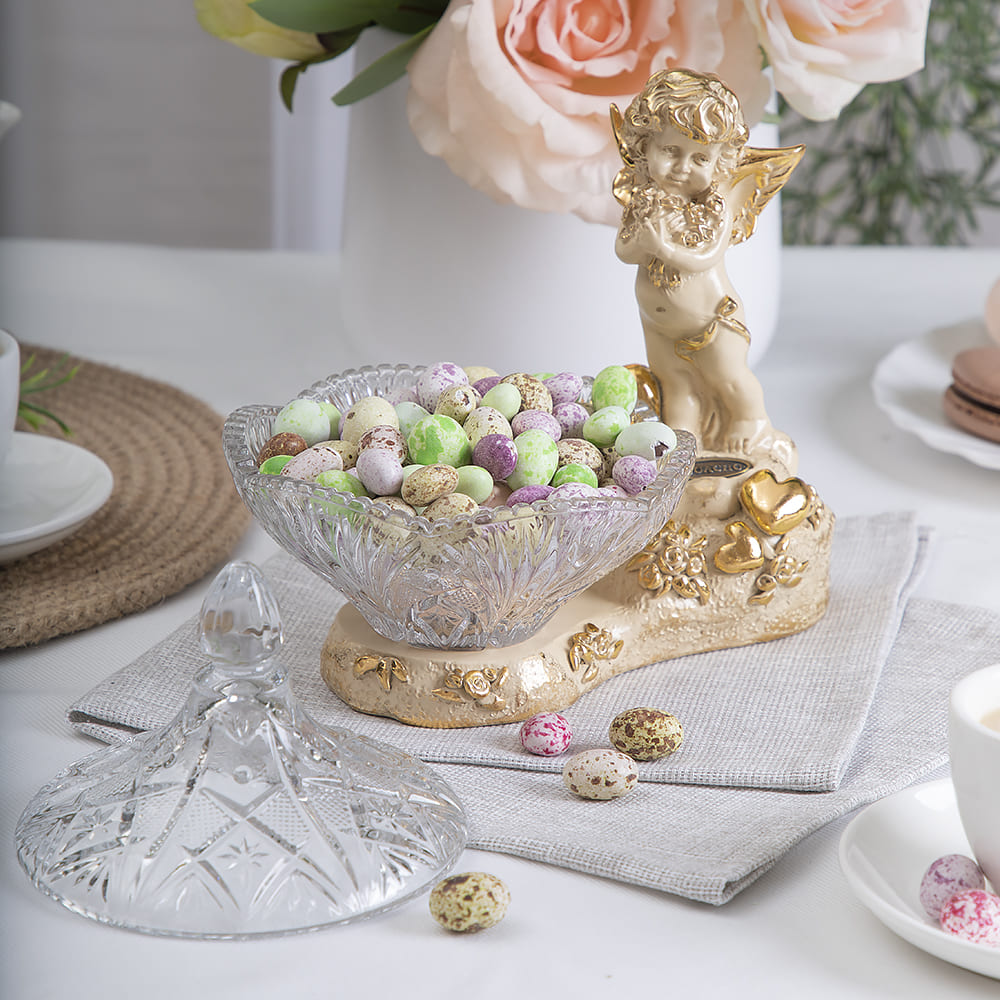 Сахарница стеклянная с крышкой Ангел Роуз BOGACHO - поистине царское украшение вашего стола. Изящная стеклянная сахарница отличной подойдет для конфет, печенья или пирожных и других десертов. Сахарница с крышкой выглядит настолько роскошно, что ее сложно отнести к просто разряду кухонных принадлежностей. Этот инвентарь для кухни или столовой - изысканный декор украшение на обеденный кухонный стол.