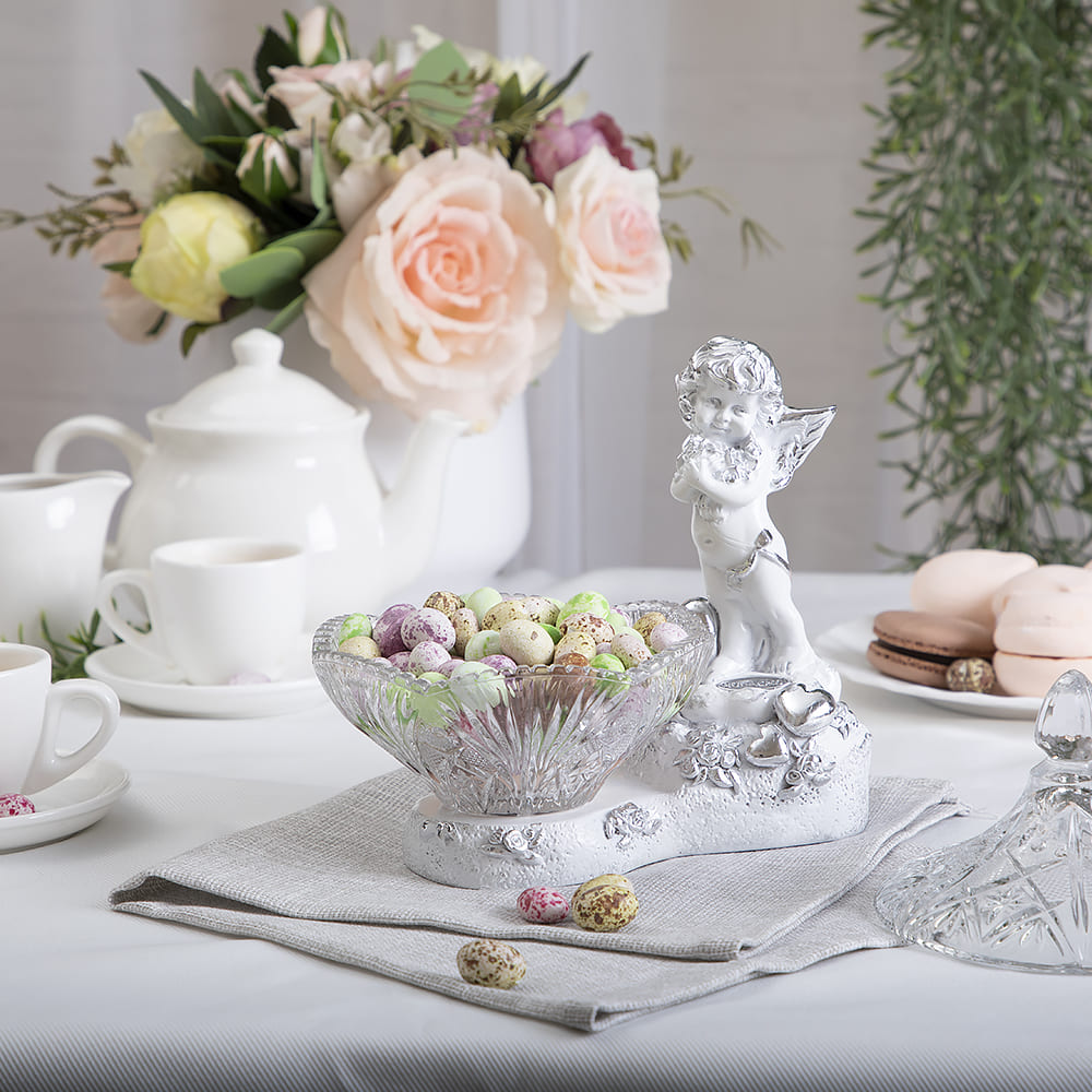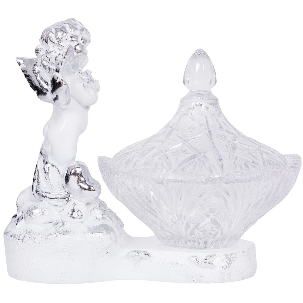 Сахарница стеклянная с крышкой Ангел Роуз BOGACHO - поистине царское украшение вашего стола. Изящная стеклянная сахарница отличной подойдет для конфет, печенья или пирожных и других десертов. Сахарница с крышкой выглядит настолько роскошно, что ее сложно отнести к просто разряду кухонных принадлежностей. Этот инвентарь для кухни или столовой - изысканный декор украшение на обеденный кухонный стол. Блюдо для подачи со стеклянной чашей разнообразно в своем функционале. Это и креманка и икорница, конфетница или фруктовница. Может использоваться как вазочка для варенья или джема. Подойдет для меда, солений и орешков. Отличный вариант для мороженого. Маленькие конфетки будут необыкновенно смотреться в ней! Сахарница запомнится Вашим гостям. Это стильный декор для дома и уюта ручной работы. Сувенир можно использовать не только как посуду для сервировки стола на кухне, но и как элемент декора в гостиную или столовую и на кухню. Стеклянную декоративную вазу можно подарить в качестве памятного сувенира или купить для себя. Это невероятно красивый предмет интерьера. Ваза для цветов будет отличным подарком родителям, родственникам, коллегам, любимым и близким. Основание сахарницы выполнено из натурального материала – литьевого мрамора. Данный аксессуар для дома подойдет для интерьеров в стиле лофт и сканди, минимализм и эклектика или романтизм и вечная классика. Посуда и текстиль могут быть любыми, ведь главное украшение стола всегда у вас под рукой! Сахарница на ножке завернута в воздушно - пузырчатую пленку, ложемент и надежно упакована в коробку из гофрированного картона.