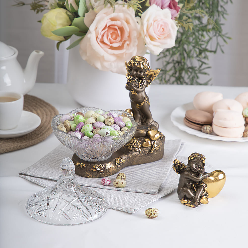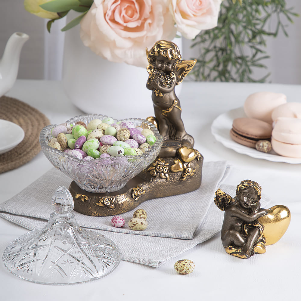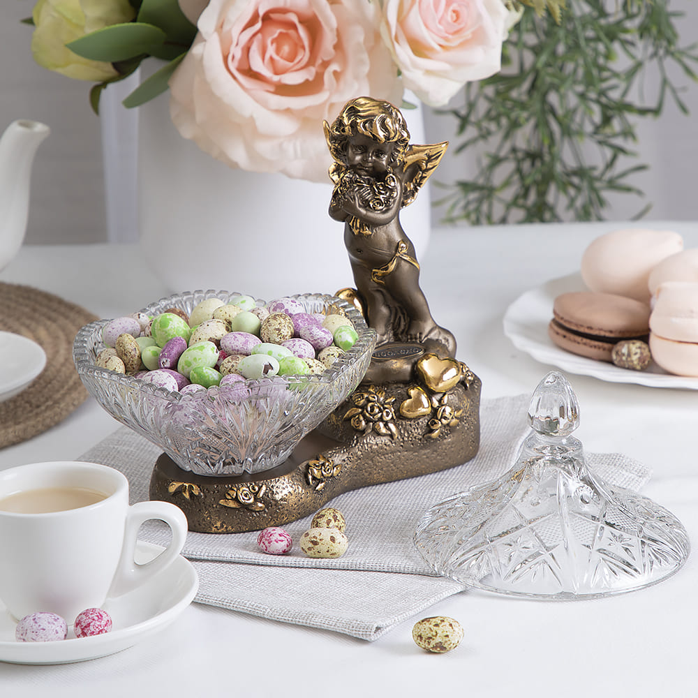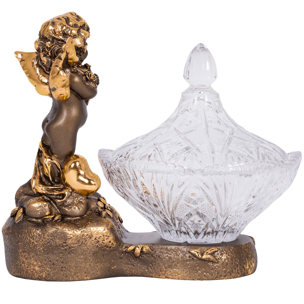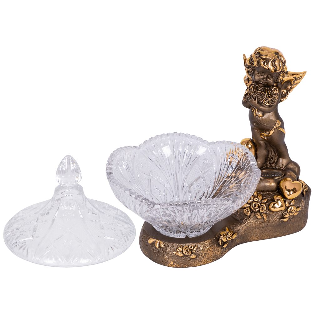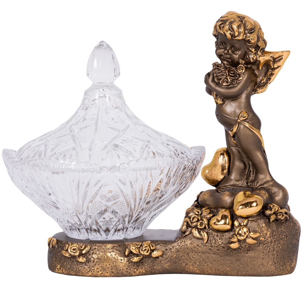 Сахарница стеклянная с крышкой Ангел Роуз BOGACHO - поистине царское украшение вашего стола. Изящная стеклянная сахарница отличной подойдет для конфет, печенья или пирожных и других десертов. Сахарница с крышкой выглядит настолько роскошно, что ее сложно отнести к просто разряду кухонных принадлежностей. Этот инвентарь для кухни или столовой - изысканный декор украшение на обеденный кухонный стол. Блюдо для подачи со стеклянной чашей разнообразно в своем функционале. Это и креманка и икорница, конфетница или фруктовница. Может использоваться как вазочка для варенья или джема. Подойдет для меда, солений и орешков. Отличный вариант для мороженого. Маленькие конфетки будут необыкновенно смотреться в ней! Сахарница запомнится Вашим гостям. Это стильный декор для дома и уюта ручной работы. Сувенир можно использовать не только как посуду для сервировки стола на кухне, но и как элемент декора в гостиную или столовую и на кухню. Стеклянную декоративную вазу можно подарить в качестве памятного сувенира или купить для себя. Это невероятно красивый предмет интерьера. Ваза для цветов будет отличным подарком родителям, родственникам, коллегам, любимым и близким. Основание сахарницы выполнено из натурального материала – литьевого мрамора. Данный аксессуар для дома подойдет для интерьеров в стиле лофт и сканди, минимализм и эклектика или романтизм и вечная классика. Посуда и текстиль могут быть любыми, ведь главное украшение стола всегда у вас под рукой! Сахарница на ножке завернута в воздушно - пузырчатую пленку, ложемент и надежно упакована в коробку из гофрированного картона.
