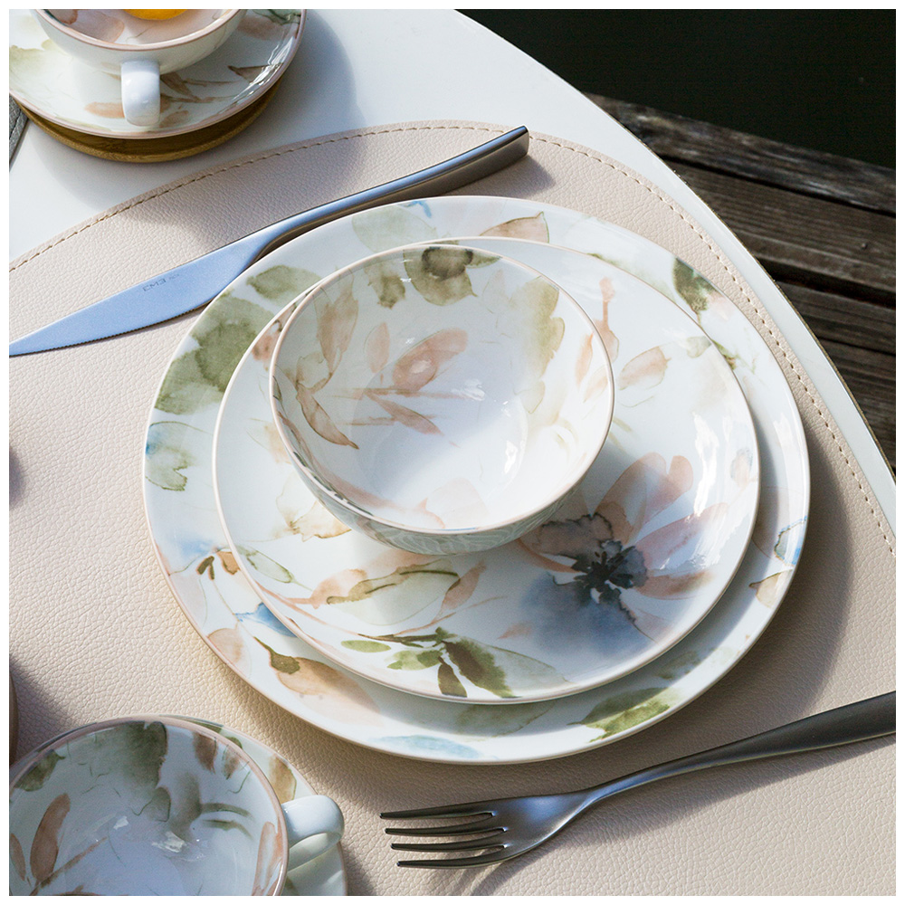 TM Bronco коллекция «Aquarelle» - это посуда с ультрамодным акварельным рисунком выполненным в технике тампонной печати. Новый имидж посуды на каждый день. Упрочненный фарфор для активного использования. Современные формы и удобные размеры. Натуральные цвета. Чистый фарфор. Сверкающая глазурь. Прекрасно сочетается с цветной посудой коллекций «Mirage»и «Sentiment». Износостойка. Надолго сохраняет свой первоначальный вид. Можно смело использовать в микроволновой печи, ставить в холодильник и мыть в посудомоечной машине. Посуда прошла сертификацию. Безопасна для контакта с пищевыми продуктами.