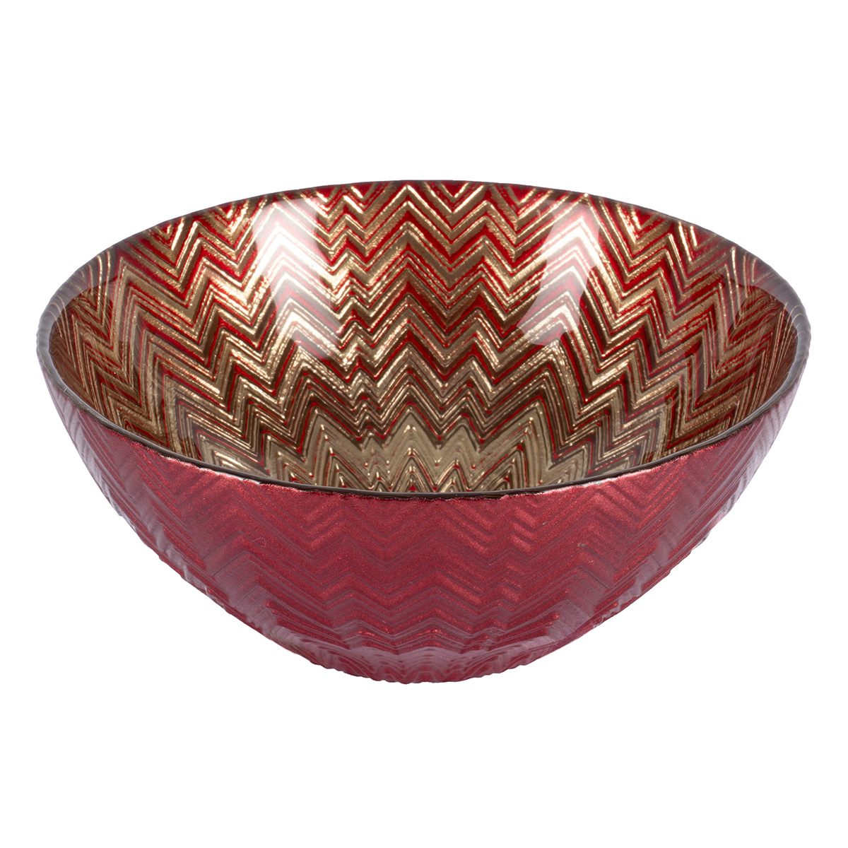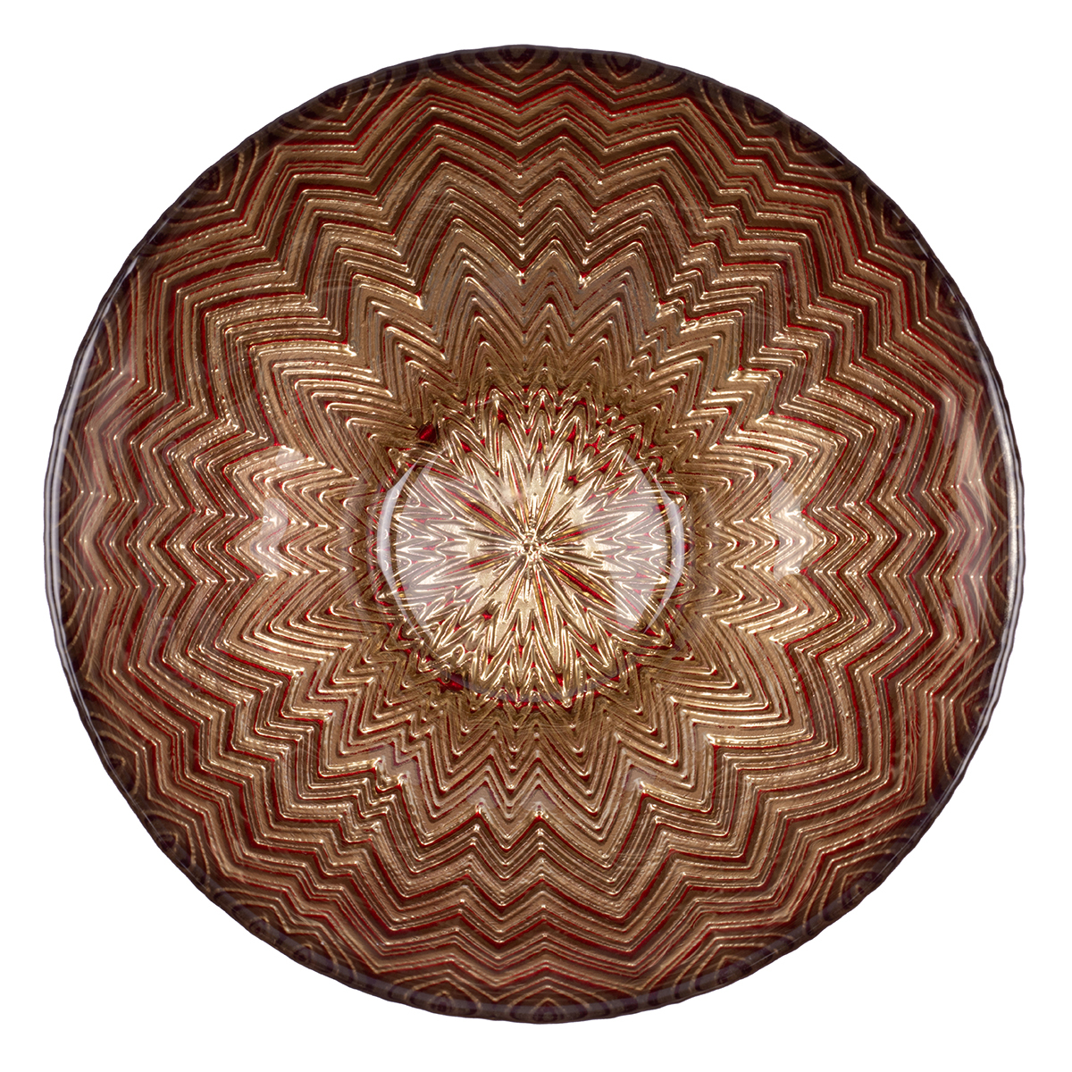 Салатник Gipfel Astrid 43219 500 мл. Изготовлен из стекла ручной работы. Салатник с абстрактным декором в оттенках золотого и брусничного цвета, придающим изделию 3D эффект.