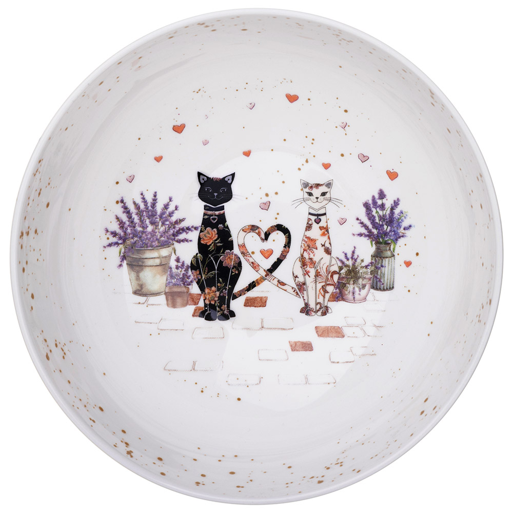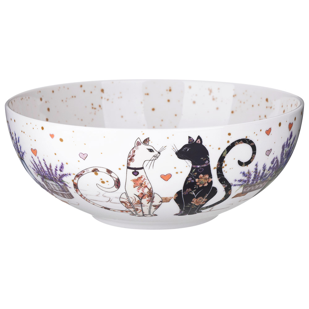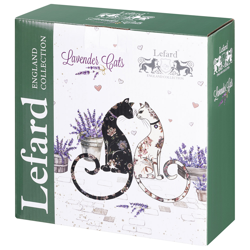 ТM Lefard эксклюзивная посуда серии «Лавандовые коты» создаст атмосферу уюта и поднимет настроение всем и каждому. Предметы украшены трогательными рисунками: влюблённые коты в окружении нежных соцветий лаванды. Упрочненный фарфор, рельефная деколь, блестящая глазурь. Коллекция представлена наборами обеденных, закусочных тарелок, салатниками оптимальных объемов, набором посуды, чайными парами и кружками. Легко сервировать любой стол на завтрак, обед или семейный ужин. Посуда хороша для ежедневного использования. Прекрасный подарок маме, бабушке, сестре, подруге. Красочная фирменная упаковка. Вся продукция сертифицирована и безопасна для контакта с пищевыми продуктами. Легка в уходе, не боится мытья в посудомоечной машине, использования в микроволновой печи.