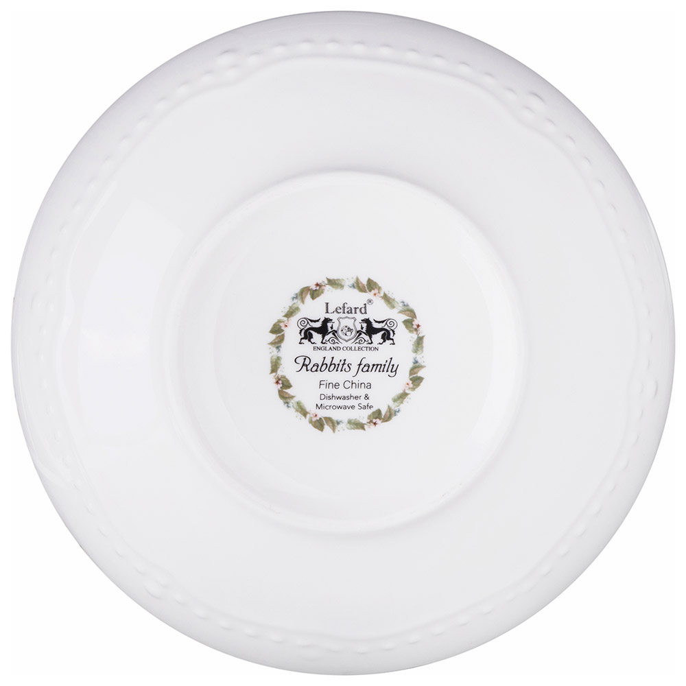 TM LEFARD эксклюзивная серия «Rabbits Family» - это очаровательный мир, где каждое изделие рассказывает добрую историю о дружном семействе кроликов. Сюжеты наполнены глубоким смыслом и учат доброте, они нравятся и взрослым, и детям. Упрочненный фарфор, оригинальный рельефный край изделий с лёгким лиственным декором, мягкая палитра цветов. Все это создает тепло и уют в доме, превращая сервировку стола в маленькое семейное приключение. Коллекция включает наборы обеденных и закусочных тарелок, салатники, кружки, кувшин, чайные пары и наборы из них. Посуда хороша для ежедневного использования. Легко накрыть веселый завтрак, плотный обед и семейный ужин. Прекрасный подарок родным и близким в красочной фирменной упаковке. Вся продукция сертифицирована и безопасна для контакта с пищевыми продуктами. Легка в уходе, не боится мытья в посудомоечной машине, использования в микроволновой печи.