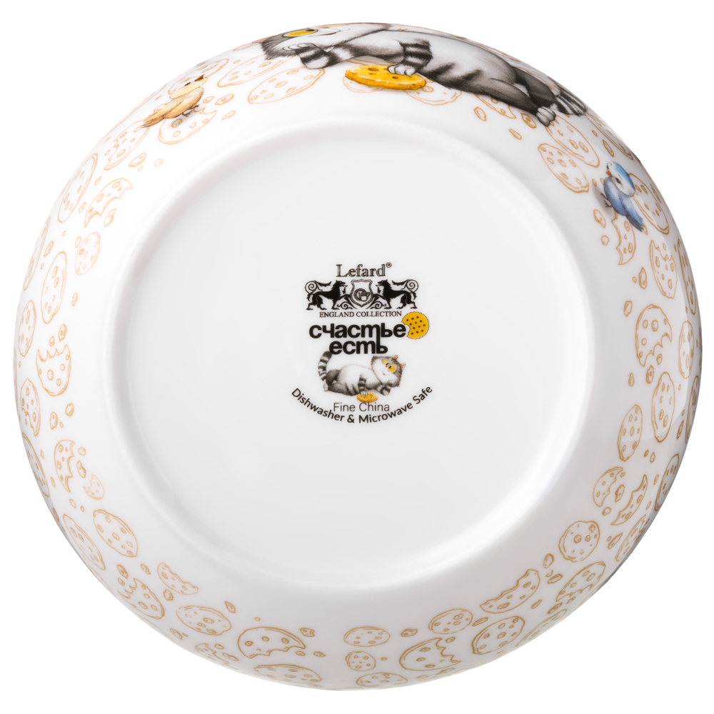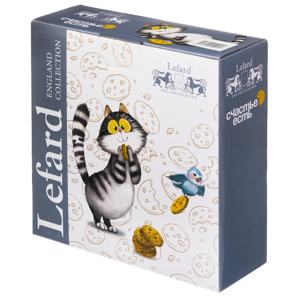 Всем, кто полон энергии и задора, любит кофе и следит за фигурой посвящается коллекция «Счастье есть» от ТМ LEFARD. Это лучший подарок детям, родителям, друзьям и коллегам. Поднимайте настроение вместе с веселым котиком, верьте, Счастье есть! Кружки, наборы посуды, салатники, закусочные и обеденные тарелки выполнены из высококачественного фарфора. Удобные формы и размеры. Красочная упаковка. Продукция прошла сертификацию, безопасна для контакта с пищевыми продуктами. Можно использовать в микроволновой печи, мыть в посудомоечной машине.