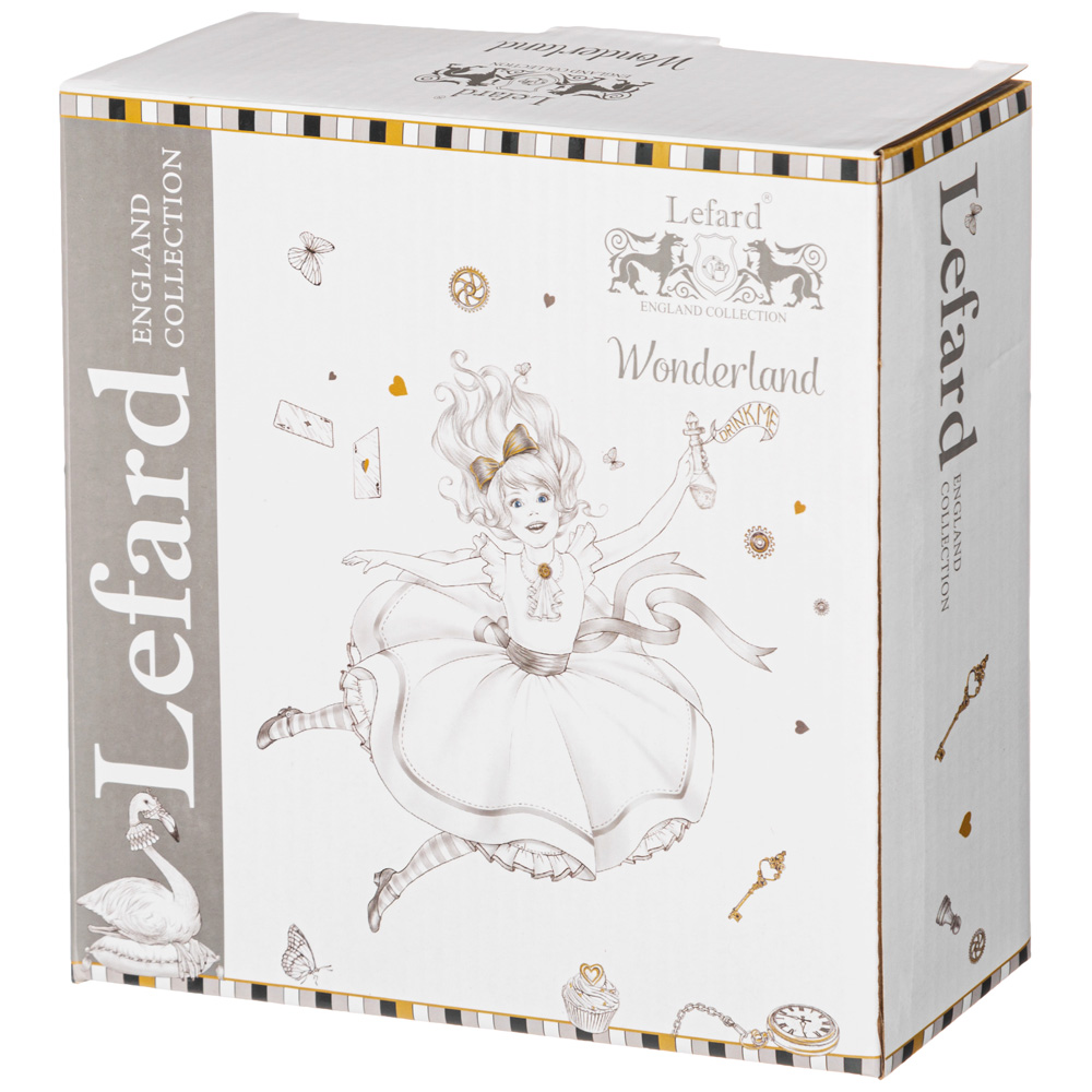 ТМ LEFARD эксклюзивная коллекция «WONDERLAND», созданная по мотивам литературных произведений в стиле фэнтези, на которых воспитывалось не одно поколение детей и выросших взрослых. Удивительную историю девочки, встретившей говорящего Белого Кролика и загадочного Чеширского Кота знает практически каждый на планете. В жизни возможно все, надо лишь в это поверить. Широкий ассортимент тарелок, салатников, кружек, чайных пар поможет организовать «волшебное» чаепитие. Все изделия выполнены из качественного тонкого фарфора. Прямые современные формы, удобные объемы. Стильная, подарочная упаковка. Дарите сказку друзьям и близким людям!