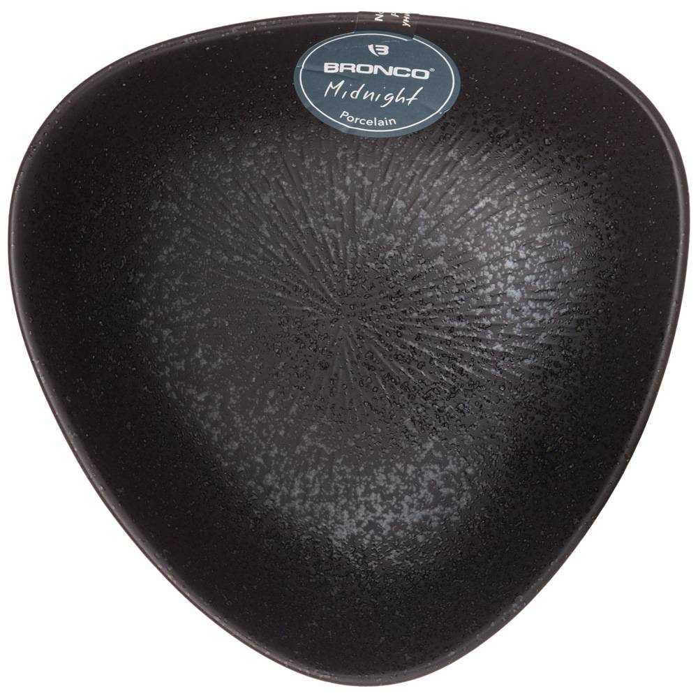ТМ BRONCO коллекция MIDNIGHT - это запатентованный продукт. Черная поверхность, визуально близкая к чугуну, имеет металлическую текстуру, что придает фарфоровой посуде сдержанный и фундаментальный стиль. Посуда устойчива к царапинам. Нож и вилку можно использовать прямо на поверхности, не царапая глазурь. Черный сдержанный и устойчивый цвет, высокая прочность и долговечность делают эту коллекцию излюбленной покупателями во всем мире. Вся продукция сертифицирована, безопасна для контакта с пищевыми продуктами. Можно использовать в духовом шкафу и микроволновой печи, мыть в посудомоечной машине.