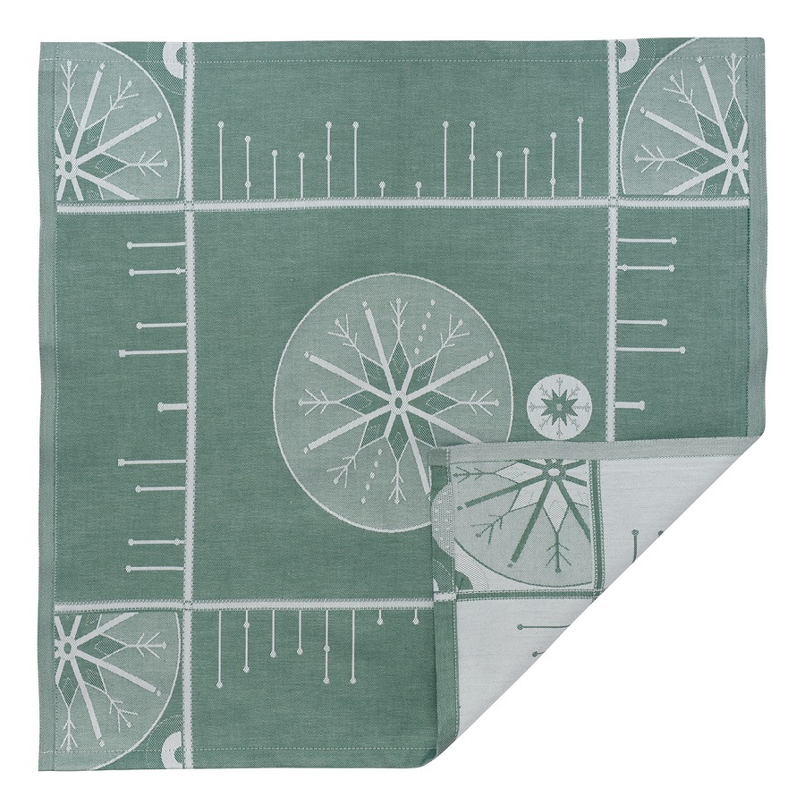 Салфетка из хлопка зеленого цвета с рисунком Ледяные узоры из коллекции New Year Essential, 53х53см