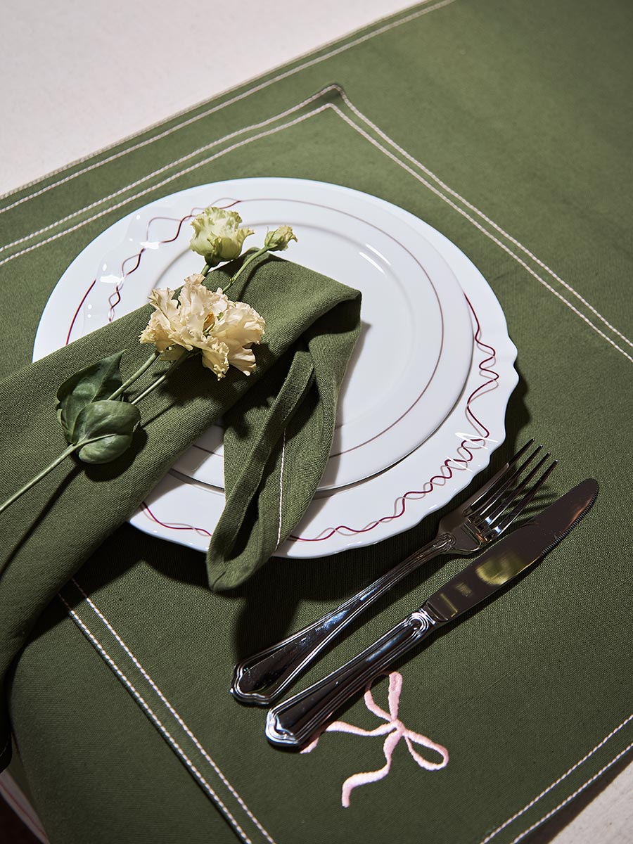 Салфетка сервировочная Fancy Bows оливкового цвета из коллекции Essential, 45х45 см