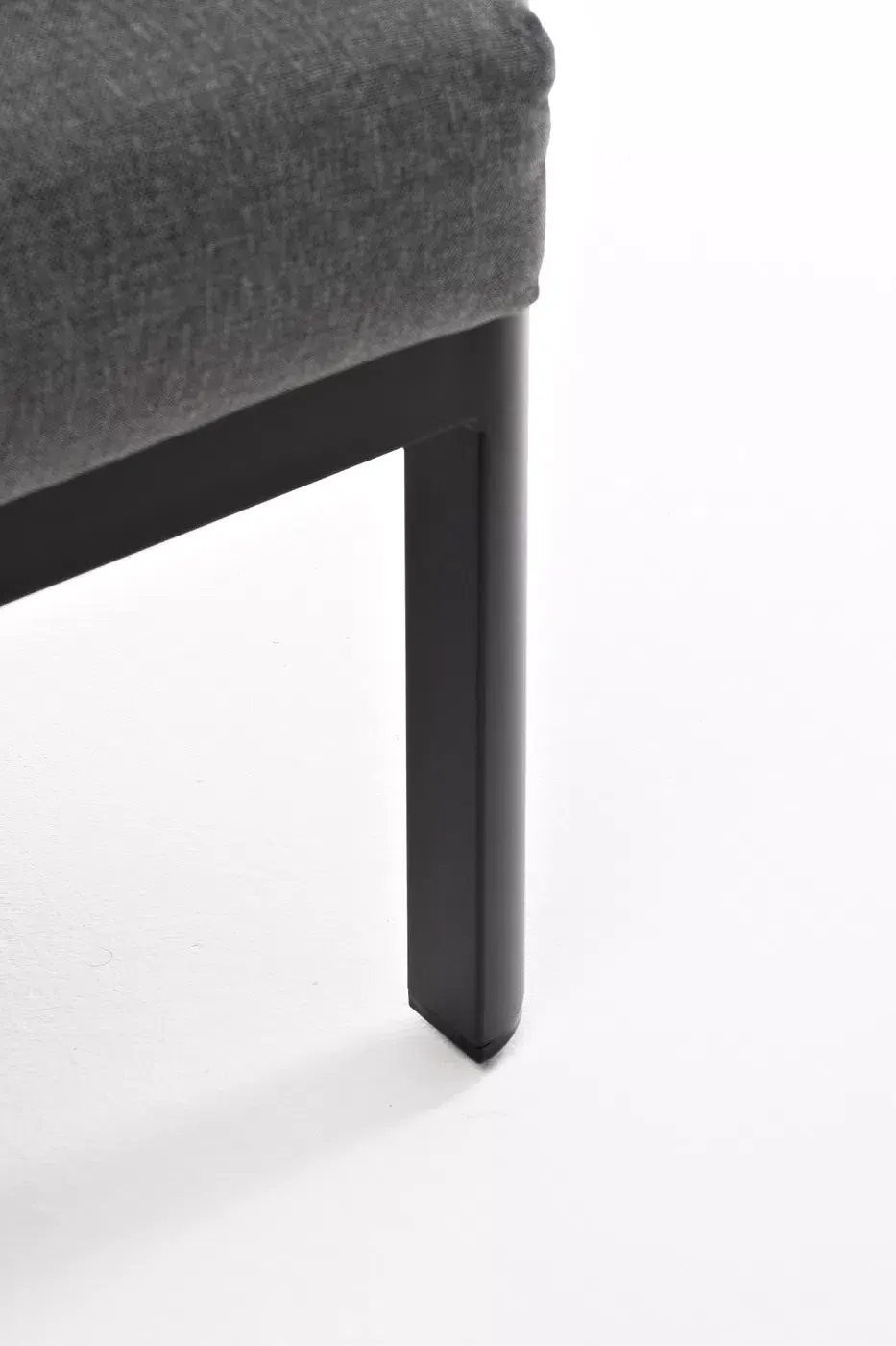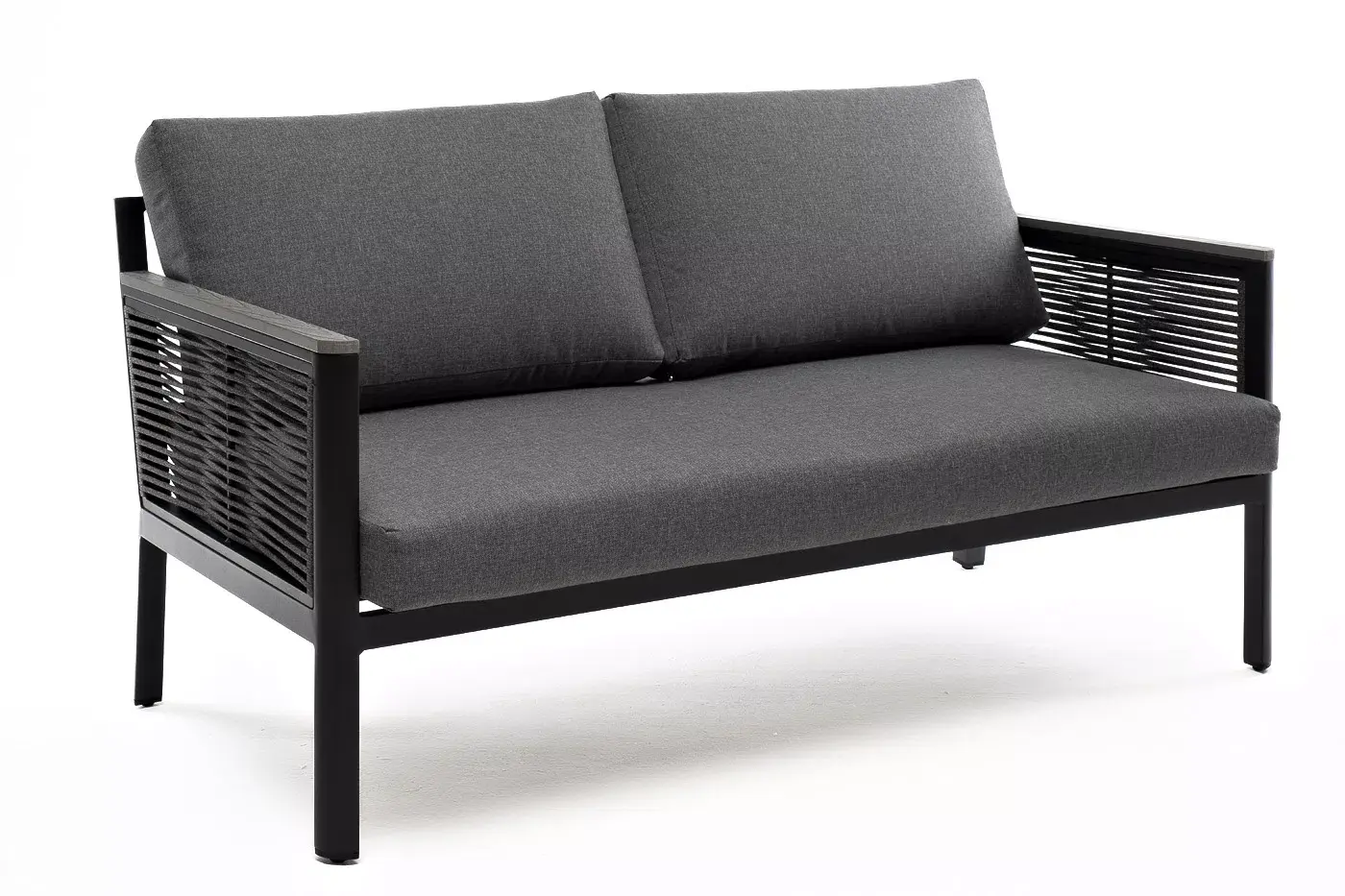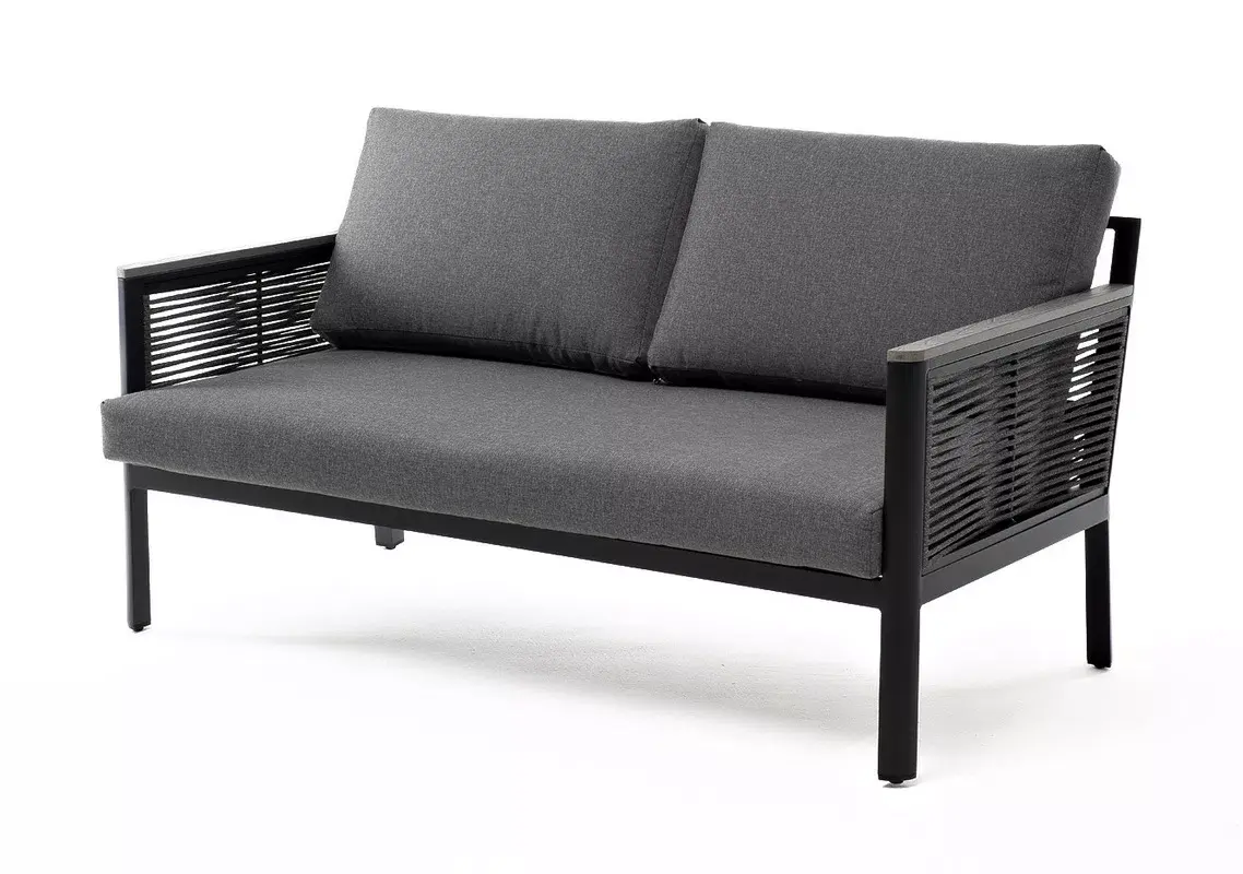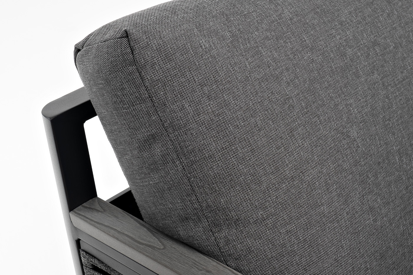 Каркас выполнен из высококачественного алюминия и окрашен порошковой краской в темно-серый цвет. Боковые стороны подлокотников вручную оплетены эластичными синтетическими лентами серого оттенка, состоящие из высокопрочных полиэфирных волокон.