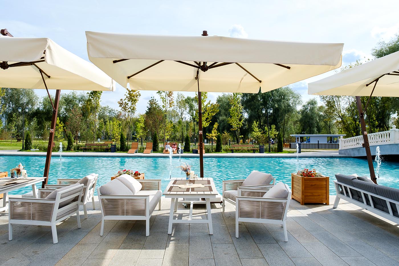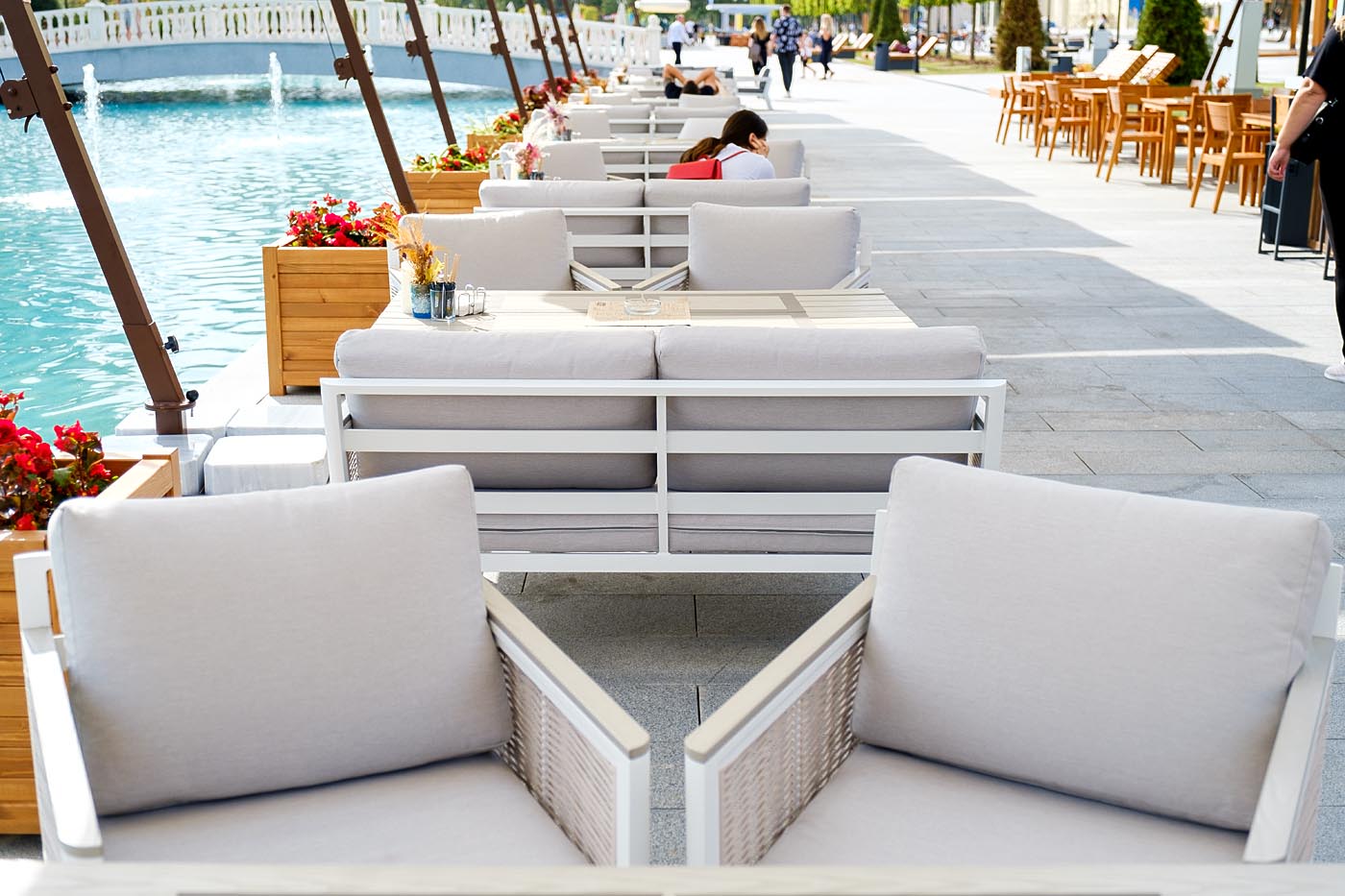 «Сан Ремо» лаунж-зона, алюминиевый каркас белого цвета, вручную оплетенный роупом серо-коричневого цвета.