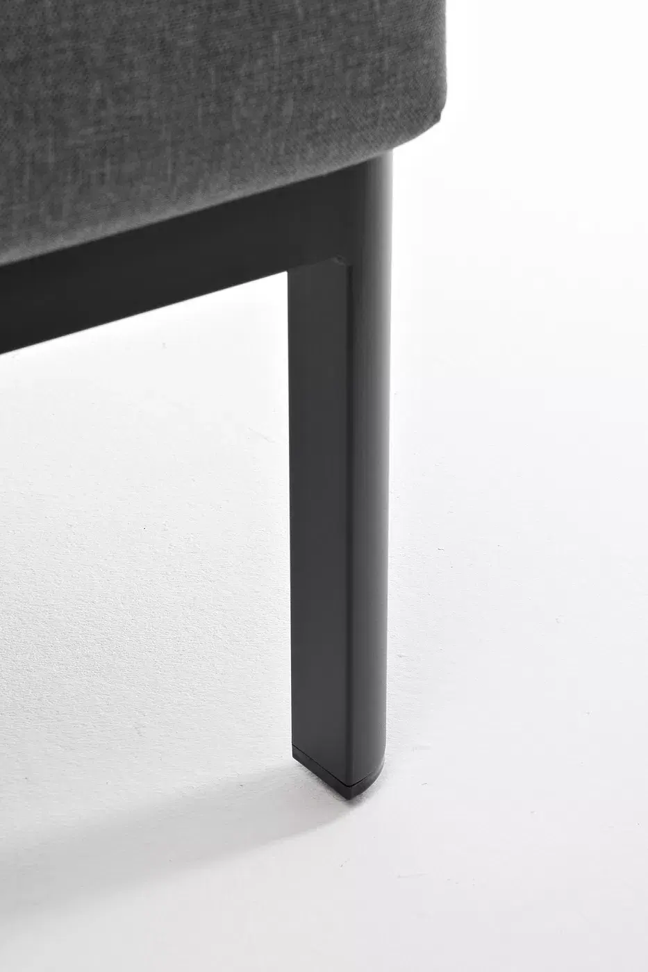 Размер модели – 680×780×700 мм. Ее каркас выполнен из высококачественного алюминия и окрашен порошковой краской в темно-серый цвет. Боковые стороны подлокотников вручную оплетены эластичными синтетическими лентами серого оттенка, состоящие из высокопрочных полиэфирных волокон.