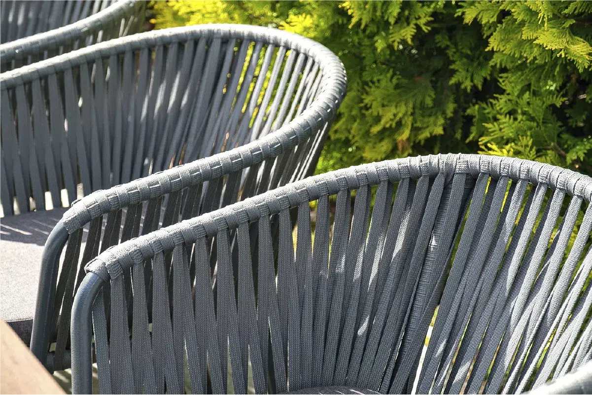 - 10 плетеных стульев «Бордо» из из эластичных лент, размером - 570х620х775 мм, цвет темно-серый.