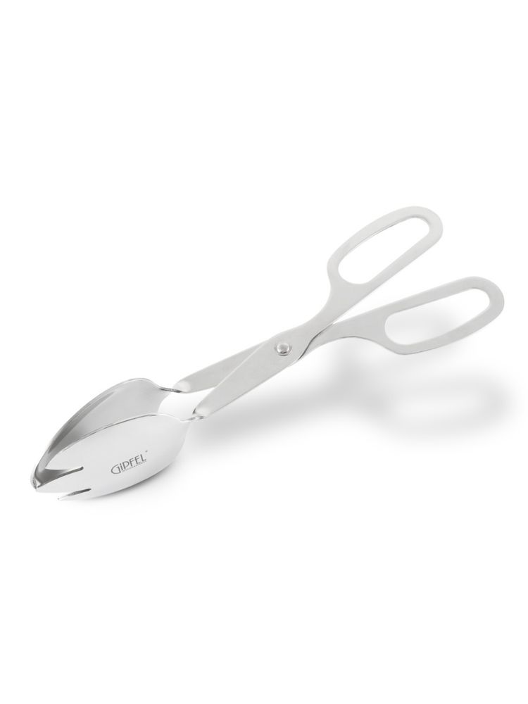 Щипцы сервировочные Gipfel 2066. Щипцами удобно подавать мясные стейки, жареную рыбу, бутерброды. С одной стороны щипцы имеют форму ложки, с другой – широкой вилки, благодаря чему пища держится крепко. Длина щипцов 26см. Щипцы сделаны из нержавеющей стали.