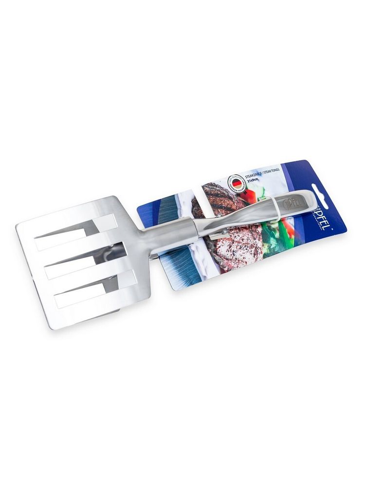 Щипцы для стейков GIPFEL 5724. Щипцы длиной 31см и шириной 9см. Щипцами удобно переворачивать даже большие стейки за счет большой площади их рабочей поверхности. Щипцы сделаны из нержавеющей стали.