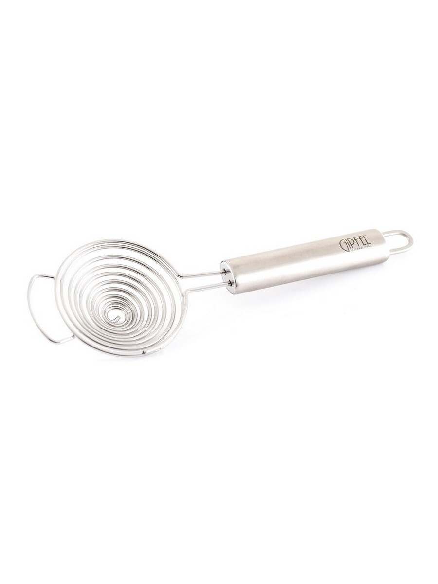 Сепаратор для яиц Gipfel Greator 9324. Аксессуар используется для отделение желтков от белков. Это может понадобиться при приготовлении бисквита, когда желтки и белки нужно взбивать по отдельности. Также он незаменим при приготовлении белкового крема, для выпечки безе или украшения пряников. Размер сепаратора 25 х 7 х 2,5 см. Инструмент полностью сделан из нержавеющей стали.
