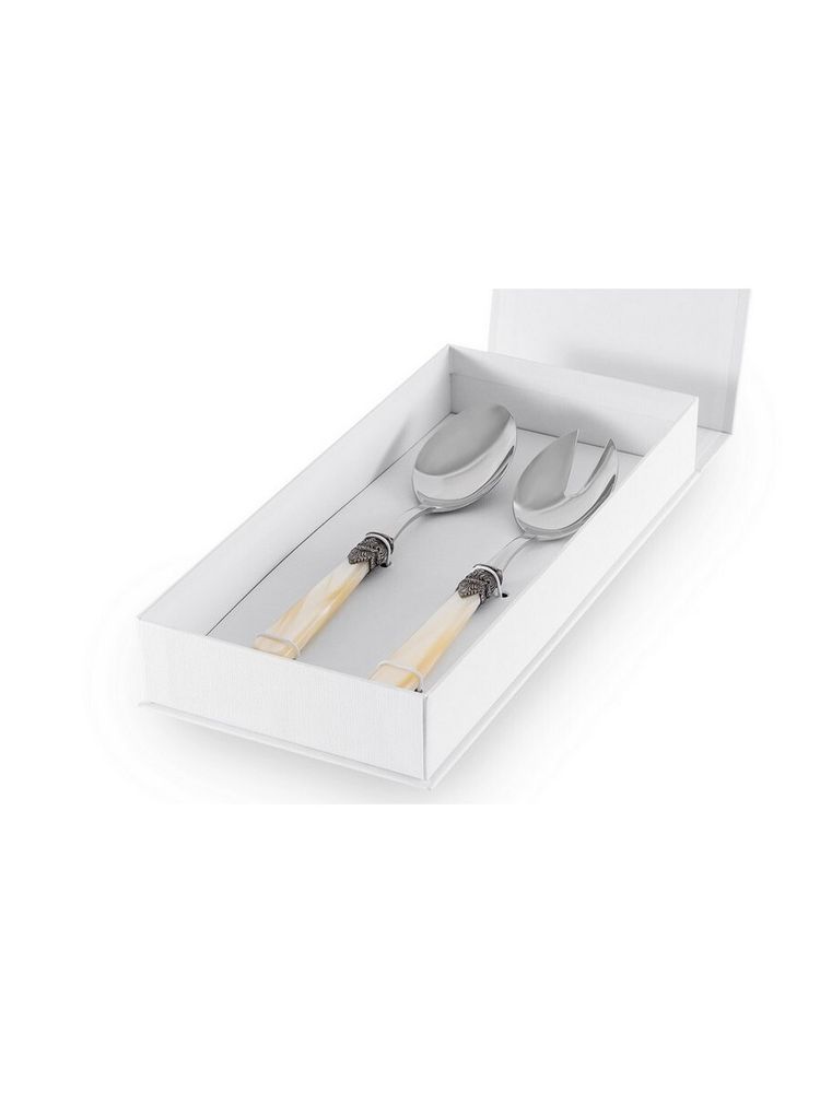 Набор сервировочный для салатов GIPFEL ROYAL 8619. В наборе 2 ложки для салата. Длина приборов - 24 см. Ложки изготовлены из высококачественной нержавеющей стали 18/10, отличающейся особой прочностью и долговечностью. Ручки приборов выполнены в светло-золотистом цвете из прочного метакрила. Набор упакован в практичный короб белого цвета.