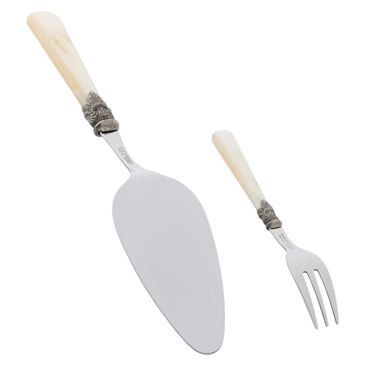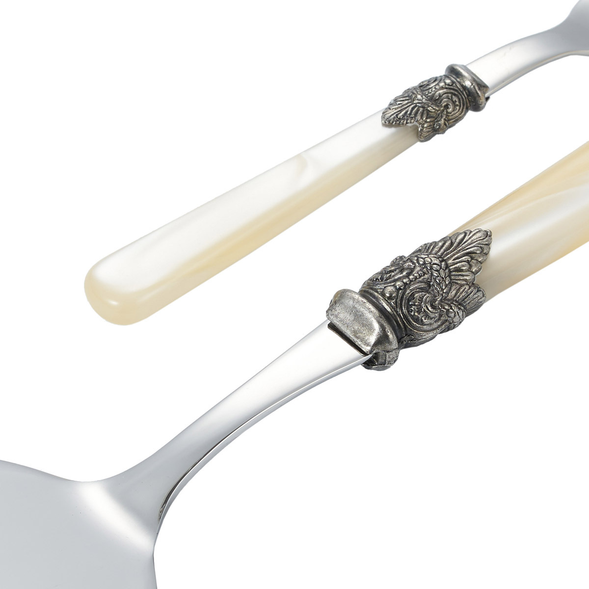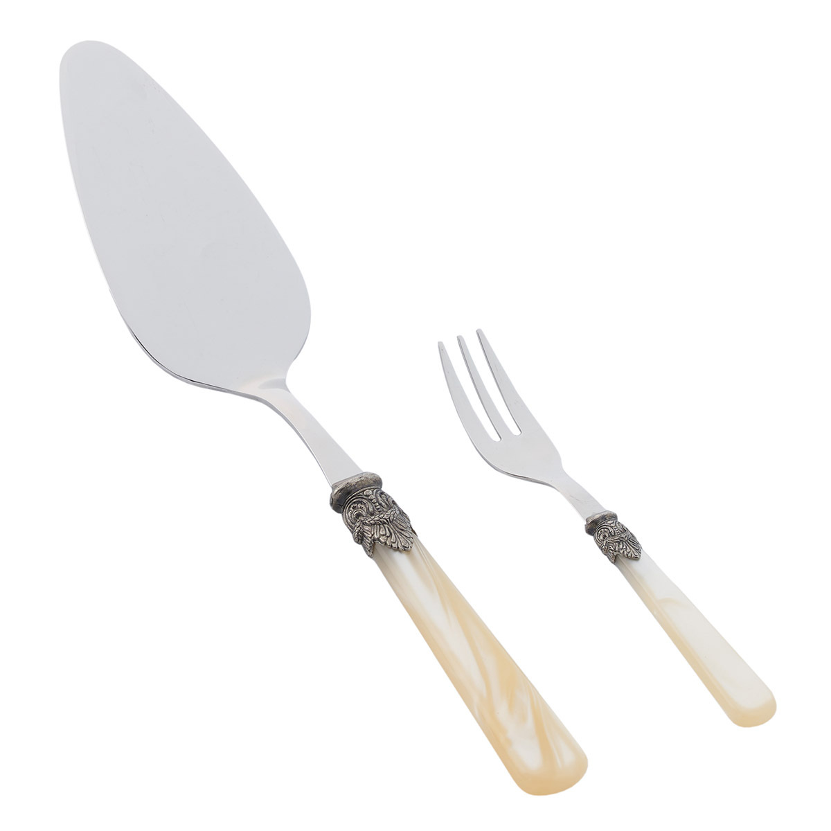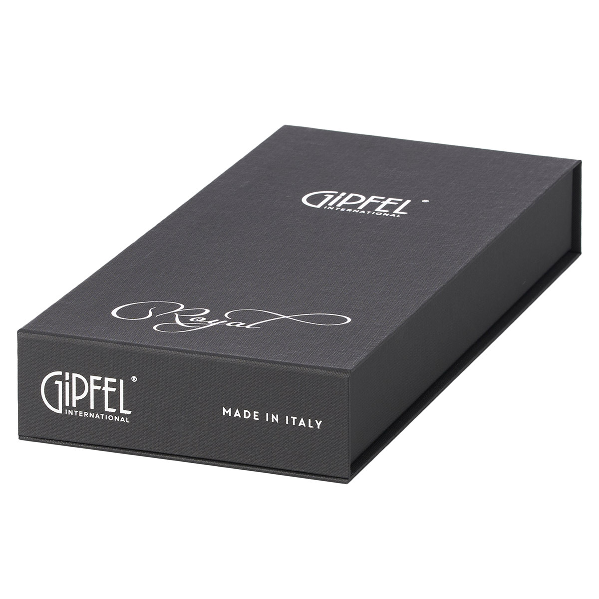 Сервировочный набор Gipfel Royal 8621. Набор из 7 предметов, в который входят 6 десертных вилочек и лопатка для торта. Изготовлен из высококачественной нержавеющей стали марки 18/10. Ручки приборов выполнены в светло-золотистом цвете из прочного метакрила.