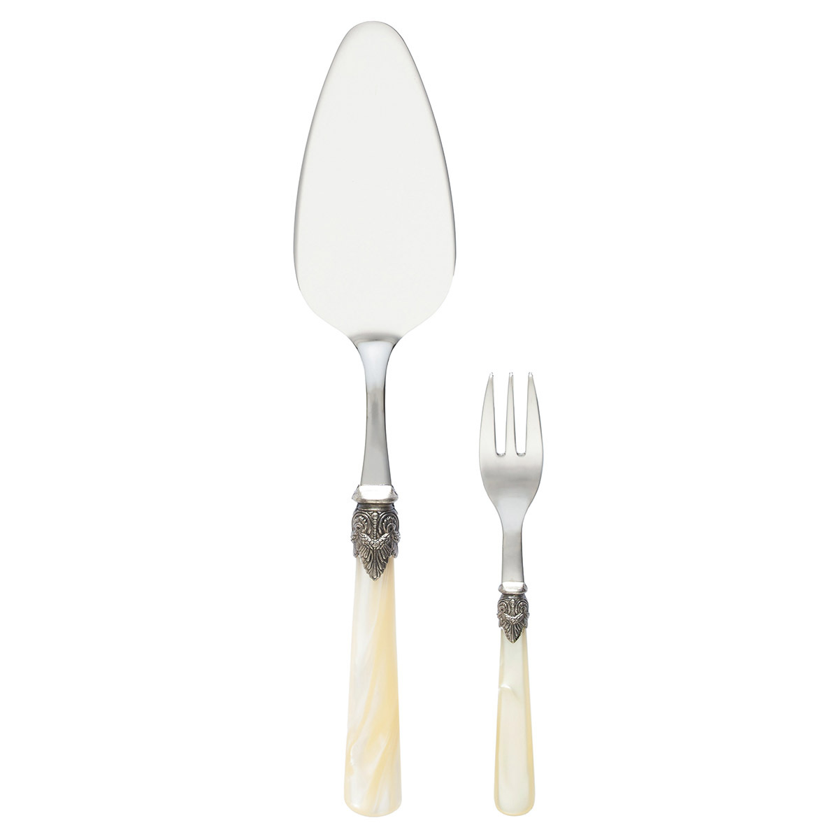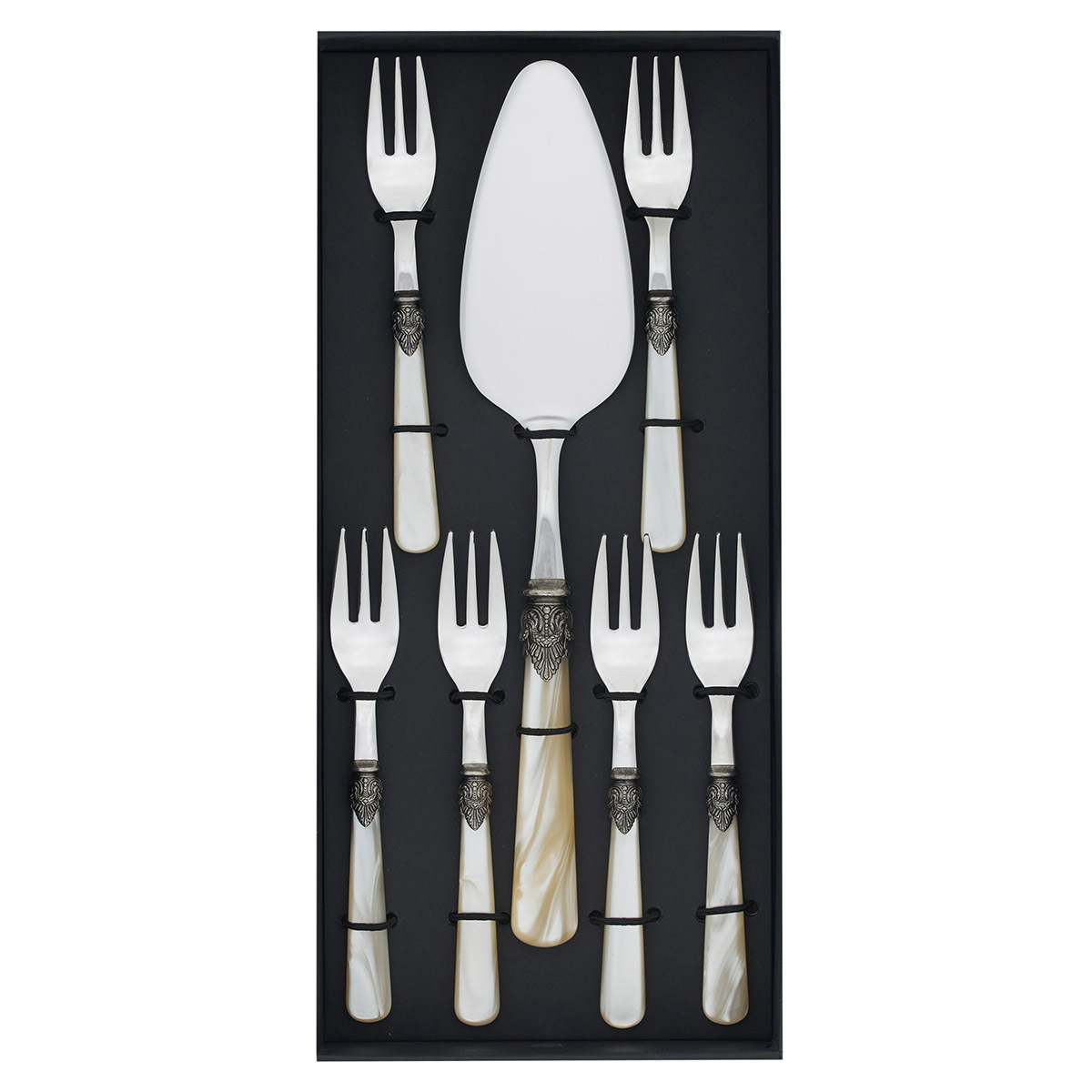 Набор из 7 предметов, в который входят 6 десертных вилочек и лопатка для торта.