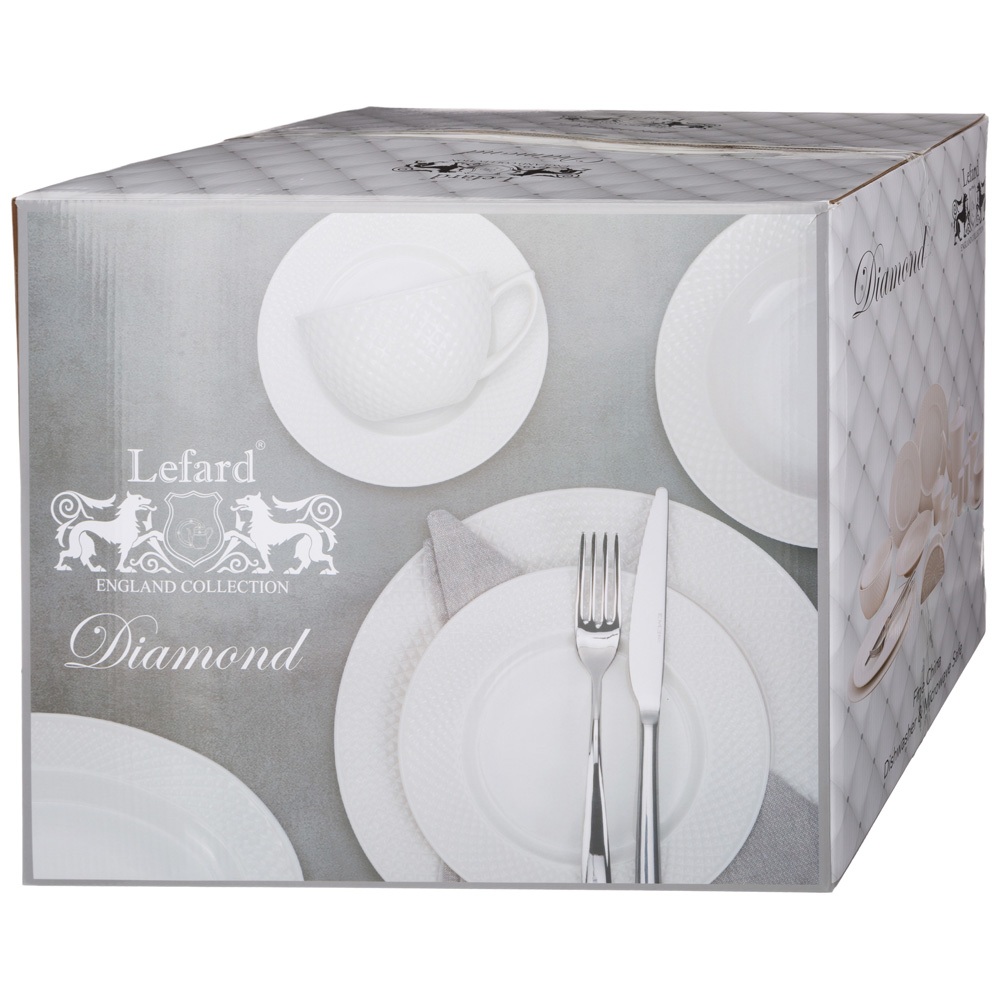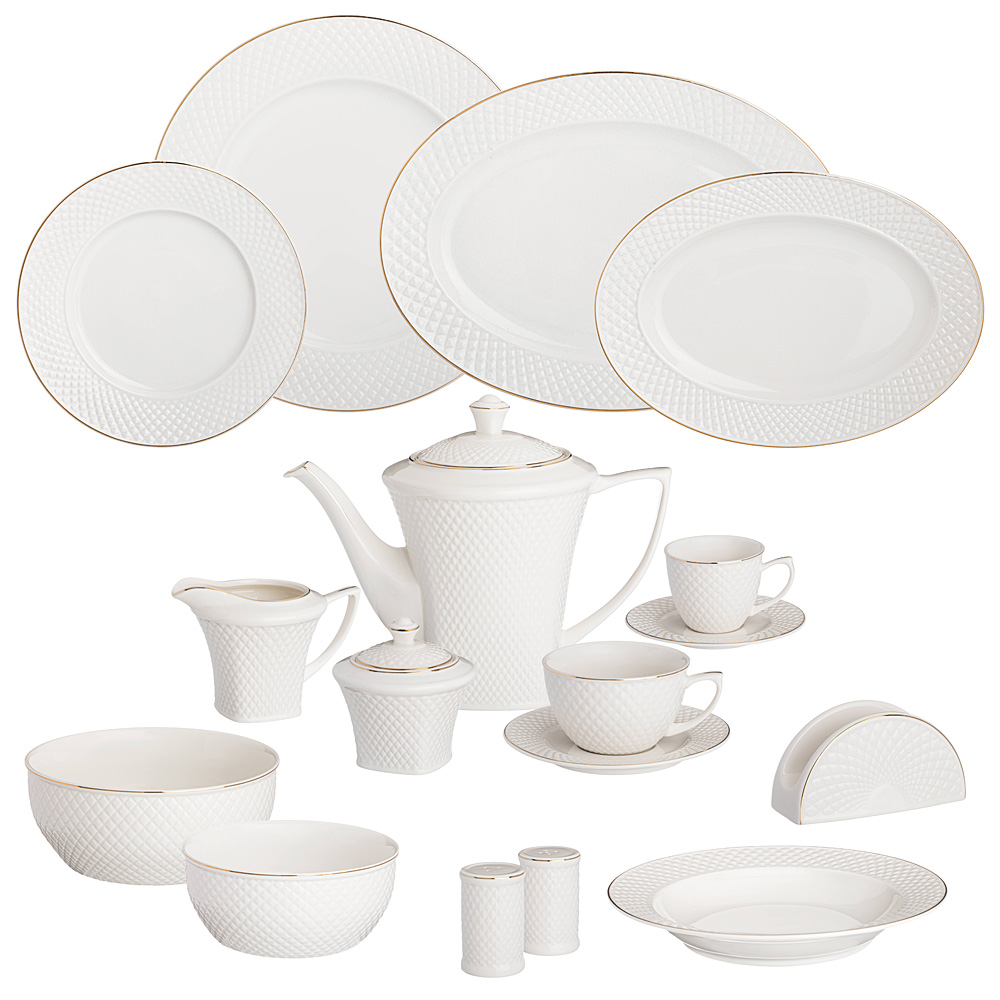TM Lefard коллекция "Диаманд Голд" - посуда и предметы сервировки из белого фафора с золотой каймой. Изделия выполнены из упрочненного фарфора. Стильная упаковка. Идеальная сервировка праздничного и ежедневного стола. Отличный подарок! Продукция сертифицирована и безопасна для контакта с пищевыми продуктами. Нельзя ставить в микроволновую печь, не рекомендуется мыть в посудомоечной машине.